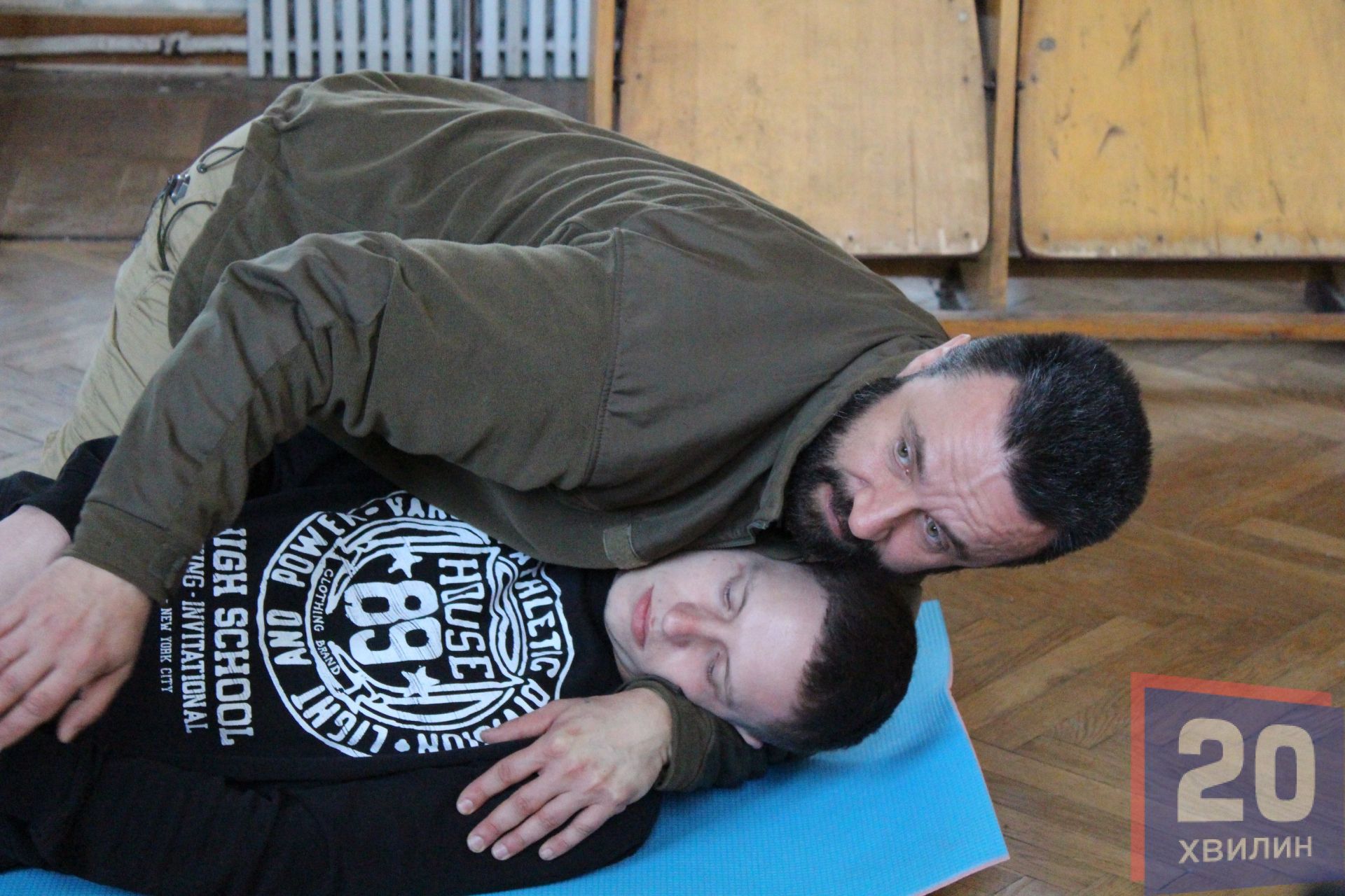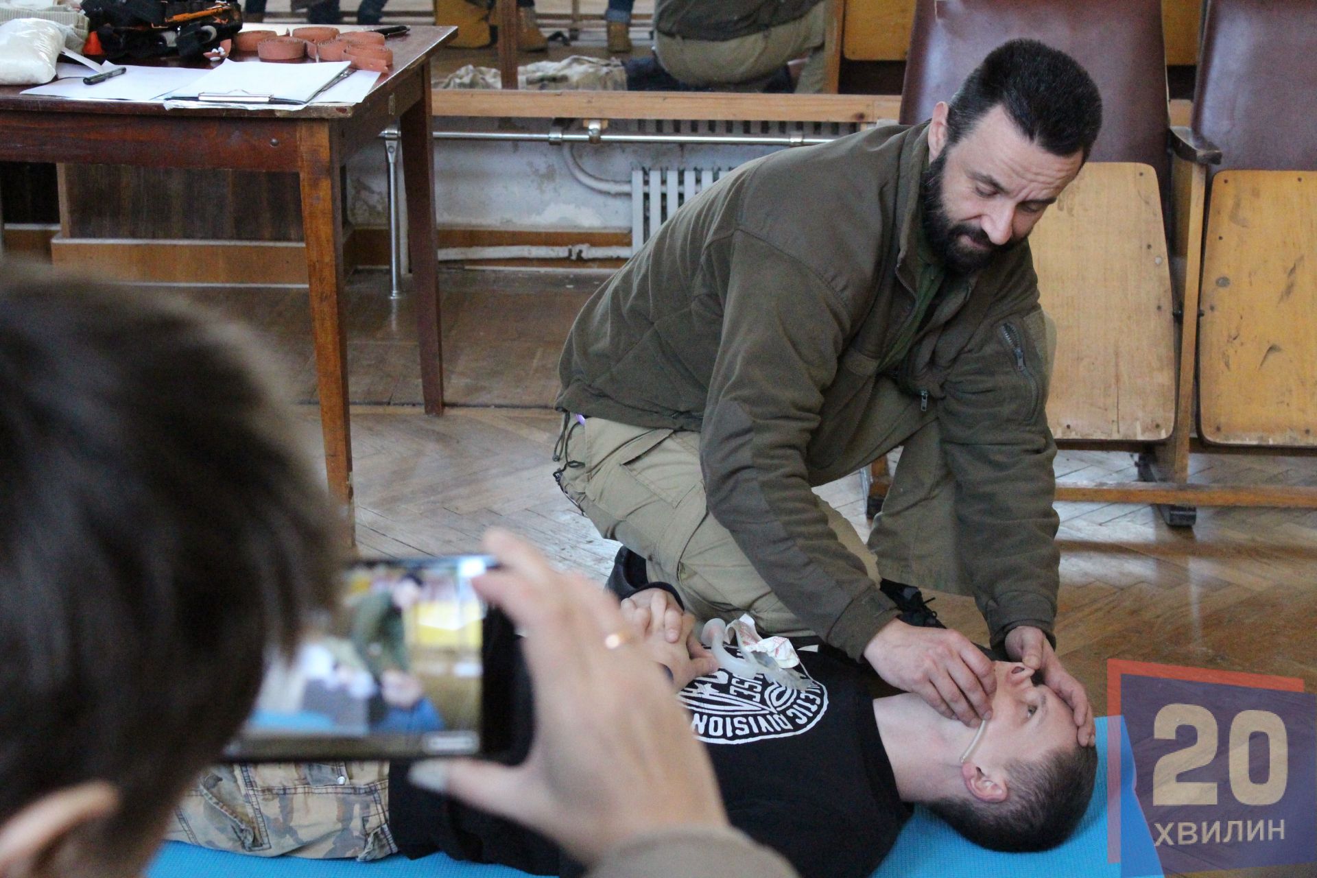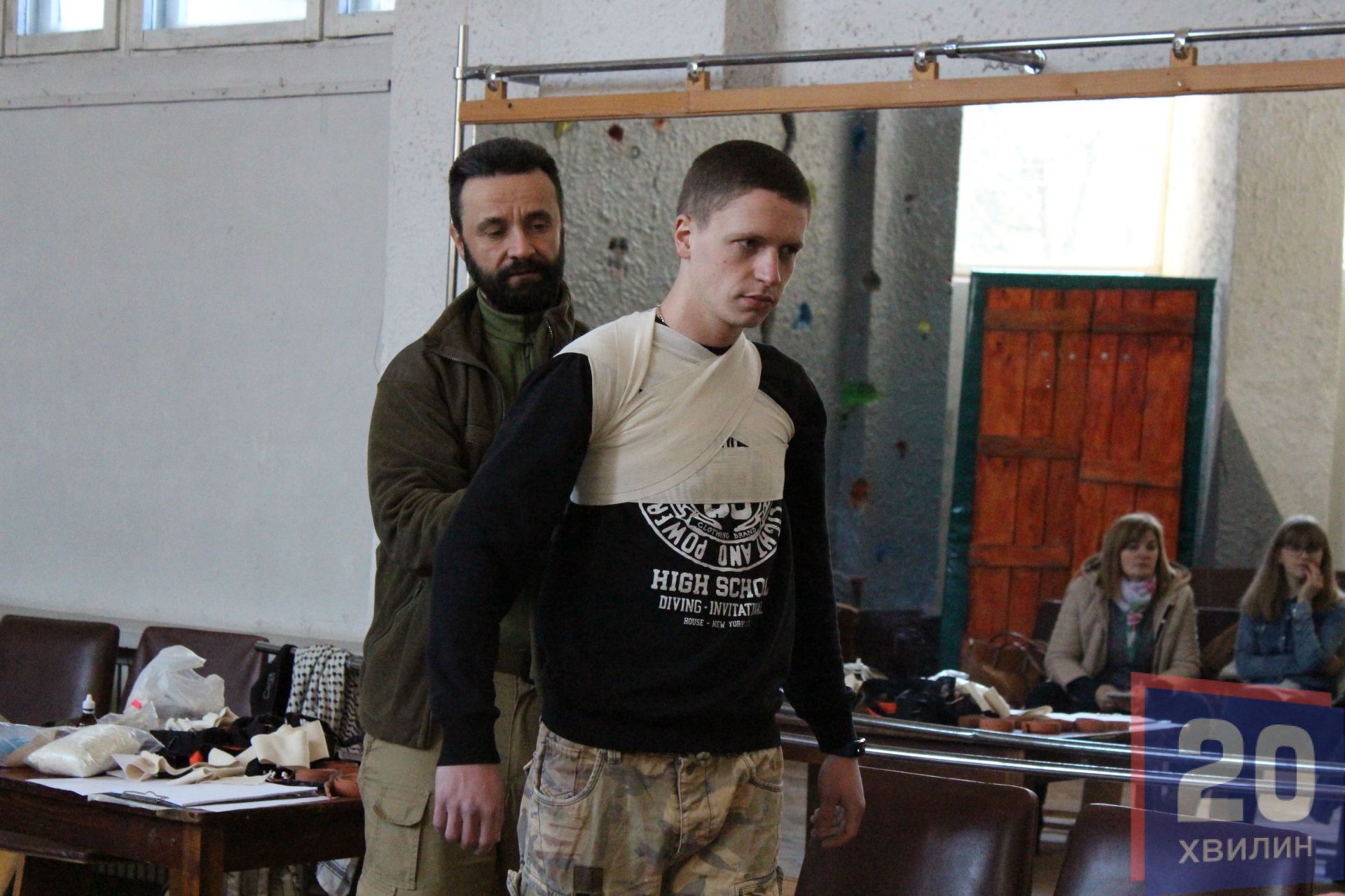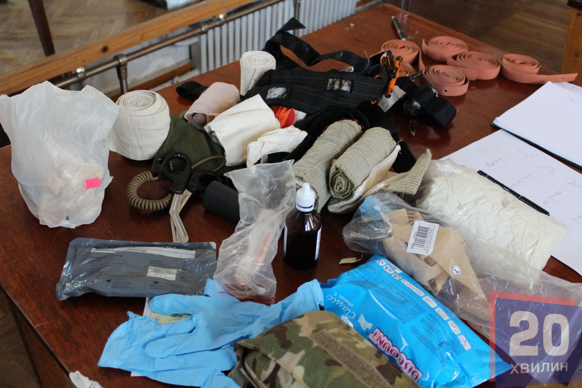 Під час заняття інстурктор Роман розповів та показав, як надавати домедичну допомогу при переломах, кровотечах та інших пораненнях чи травмах, які можуть трапитись в посякденному житті.