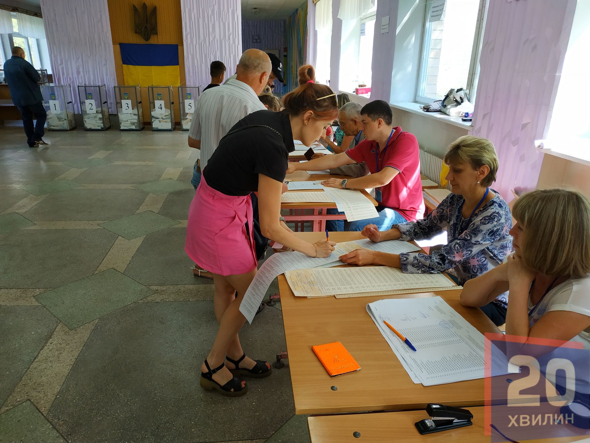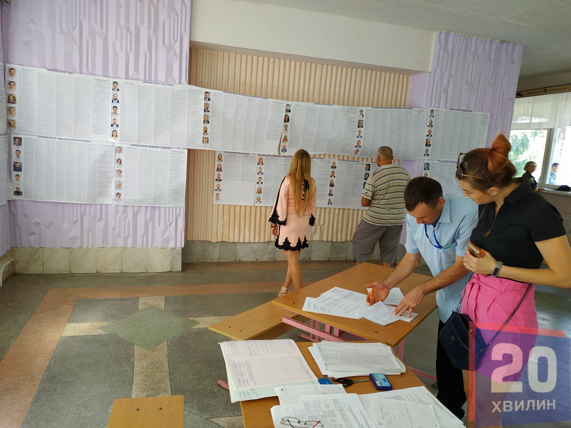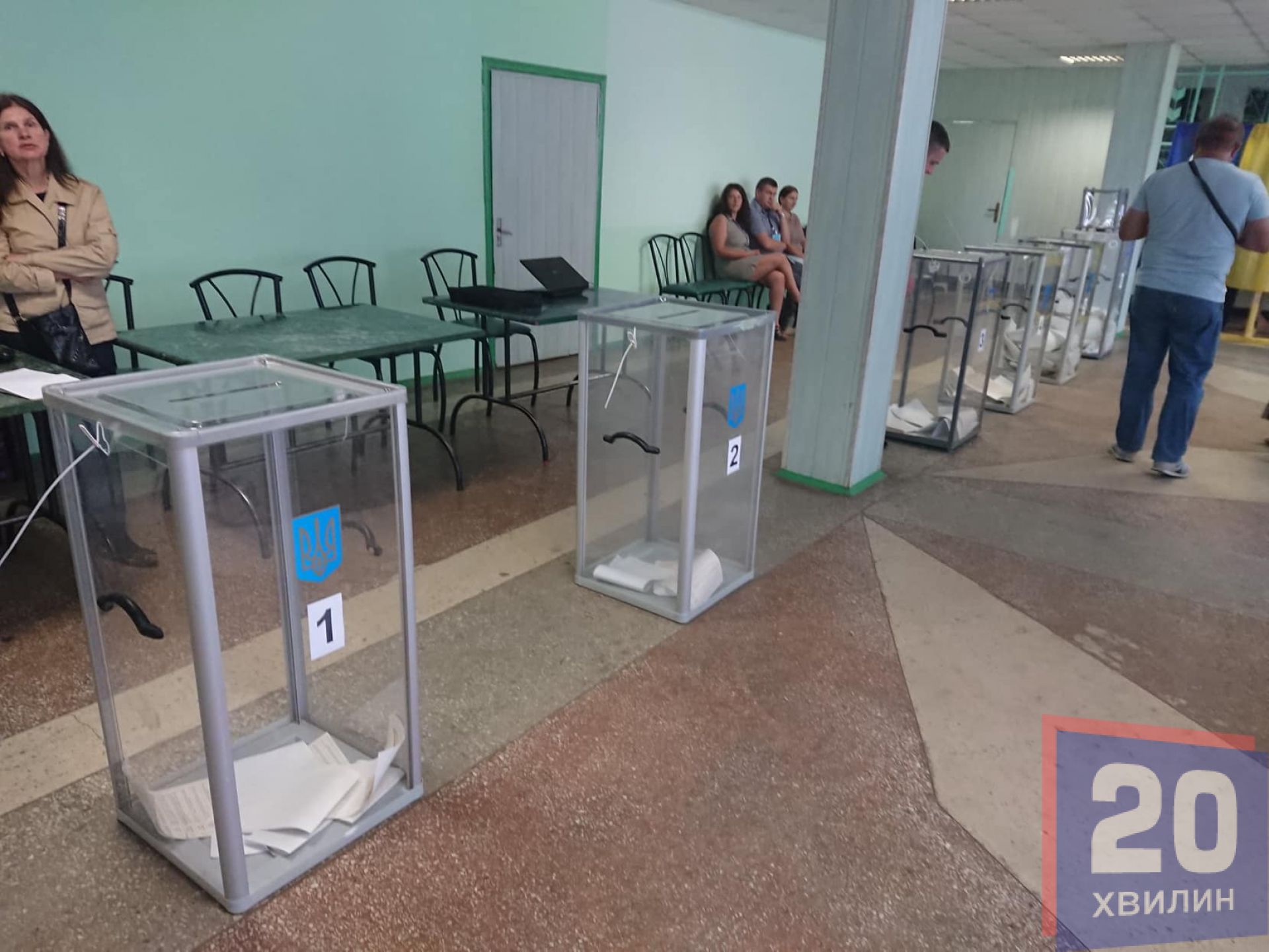 О 09:15 на дільниці людей не багато. У залі голосування сидять члени комісії, спостерігачі та кілька виборців. Черг немає, бюлені видають швидко.