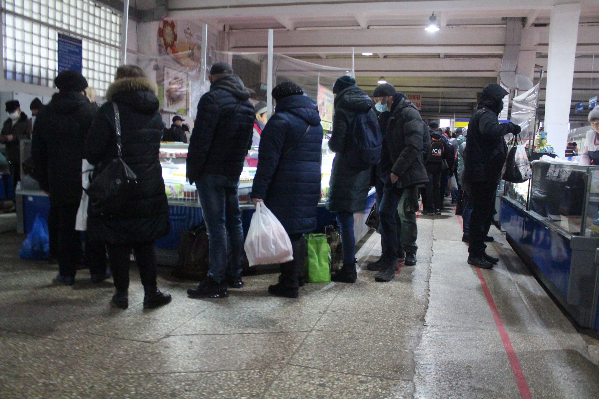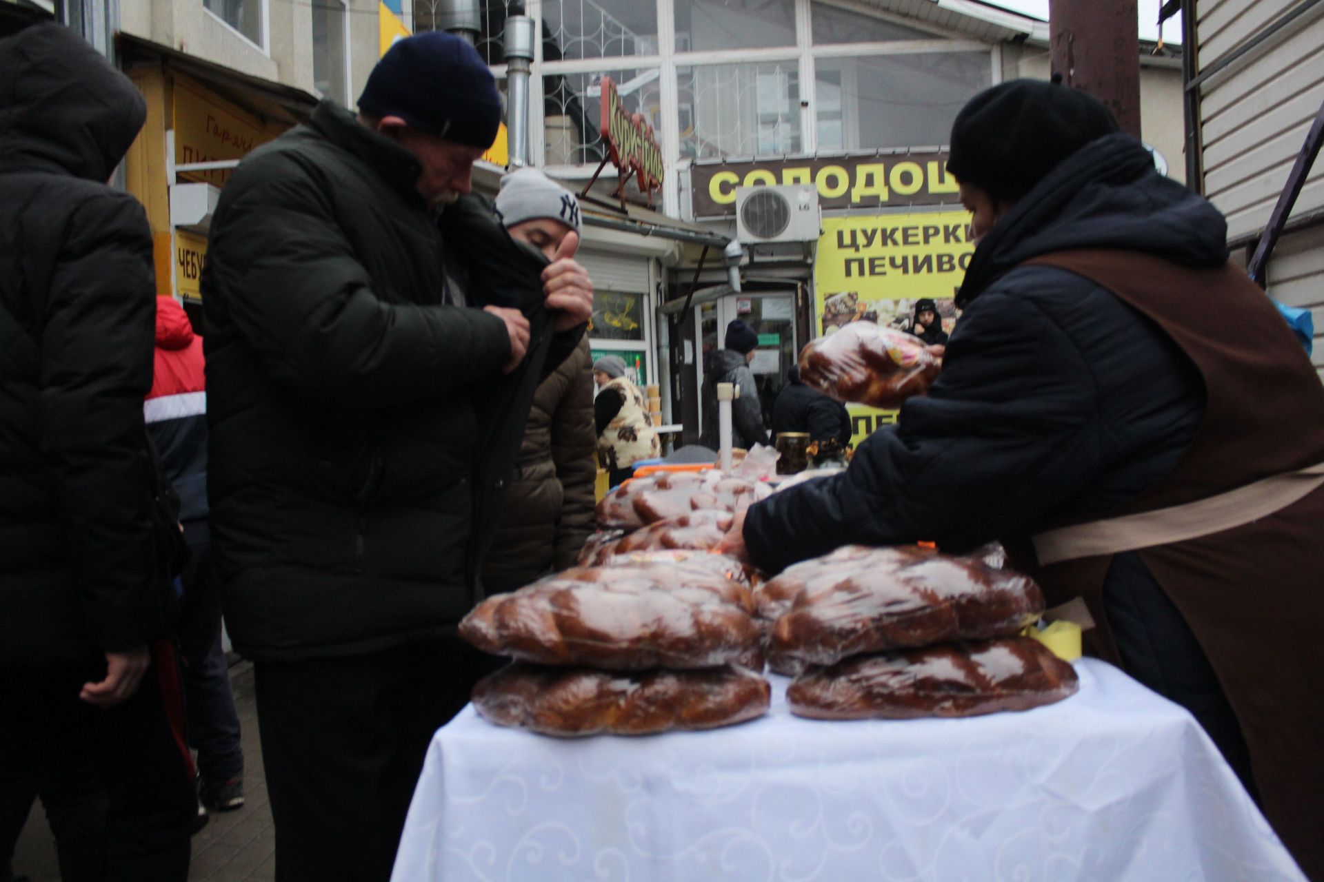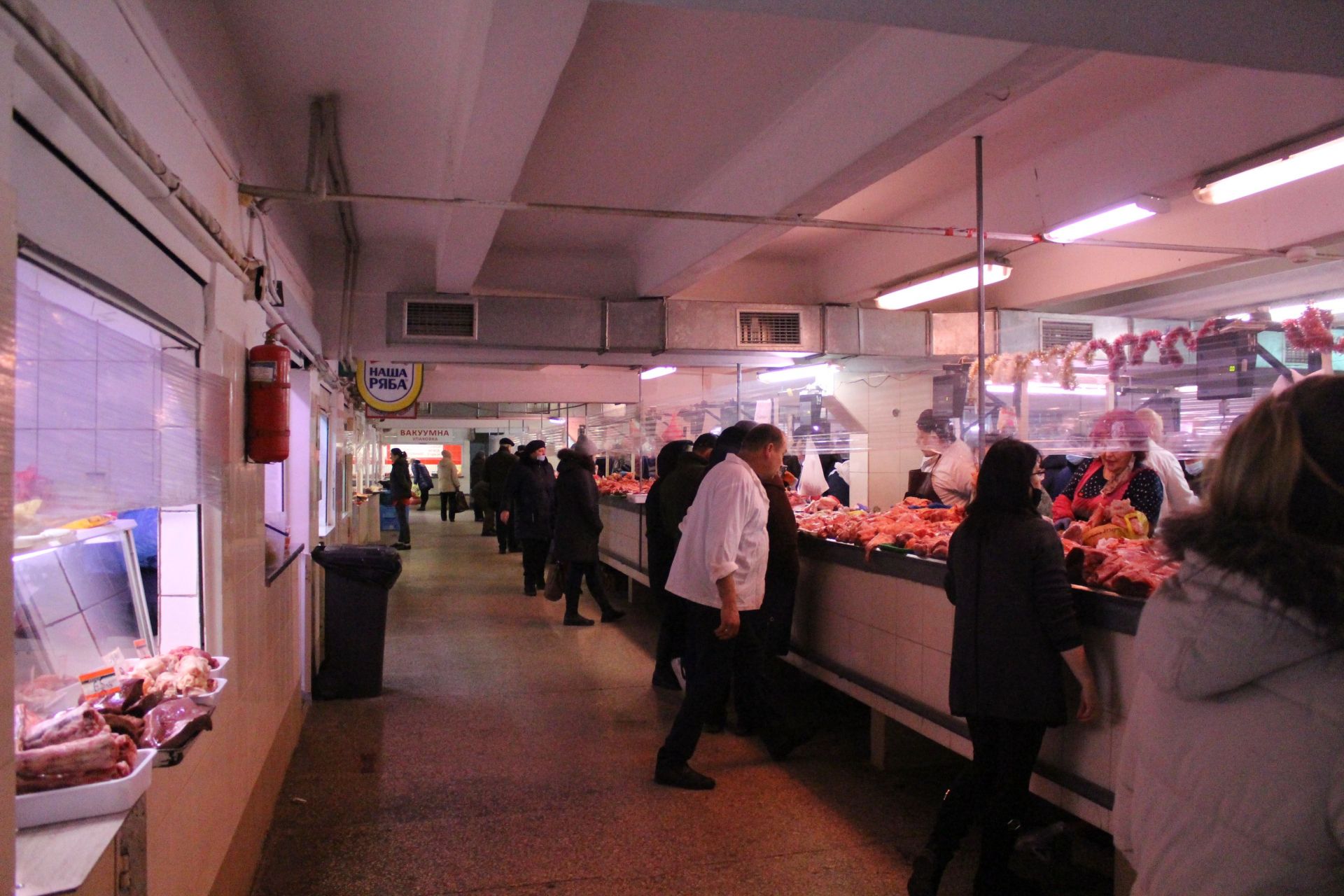На території критого ринку черги. Люди купують все необхідне для святкування. Там можна знайти все – від випічки та інгредієнтів для куті до свіжої риби та м’яса.
