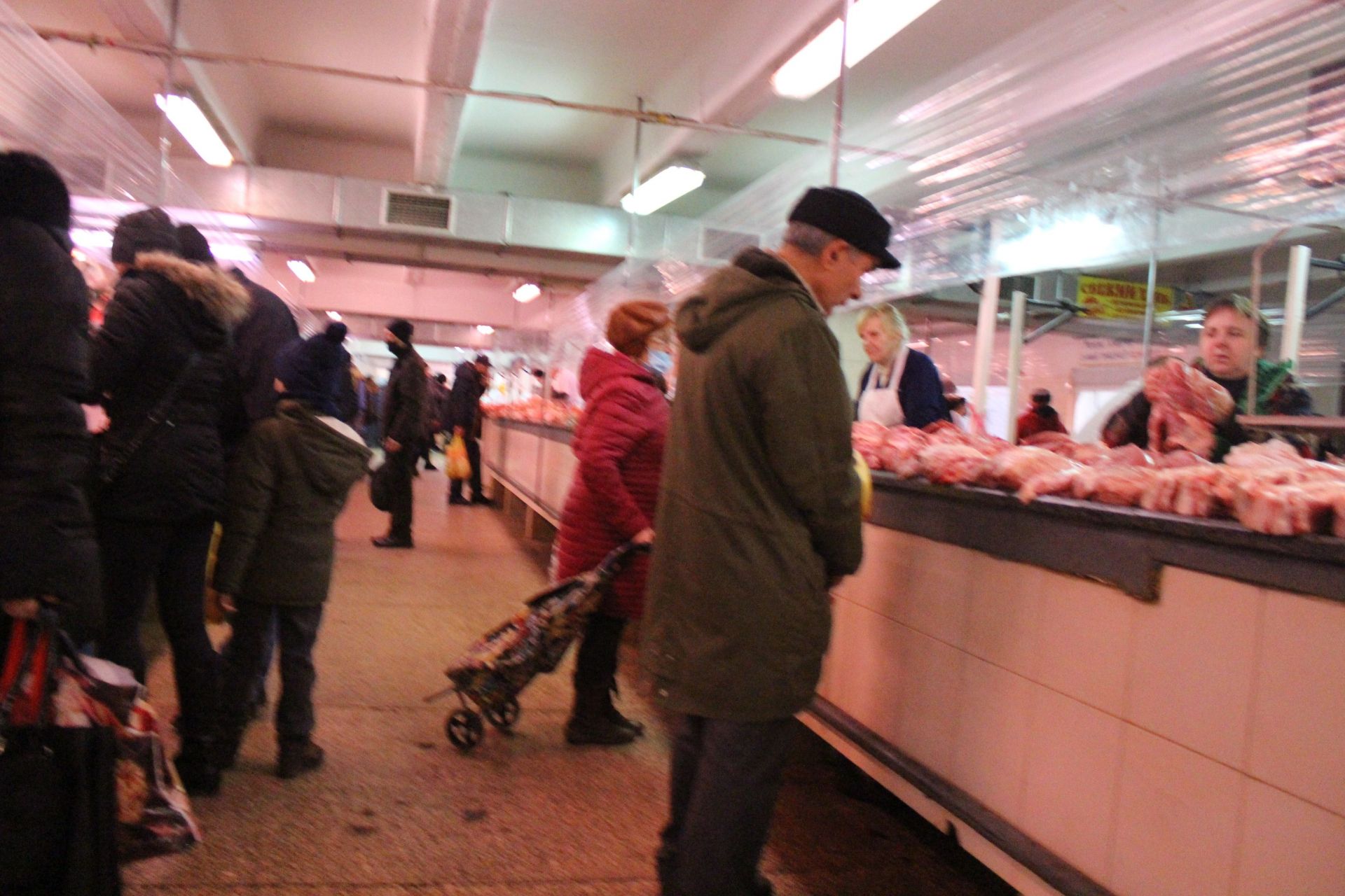 У м’ясному павільйоні також ажіотаж. Люди прийшли за свіжим м’ясом. Як розповіли продавці, багато постійних покупців завчасно просять лишити м’ясо, щоб їм вистачило.