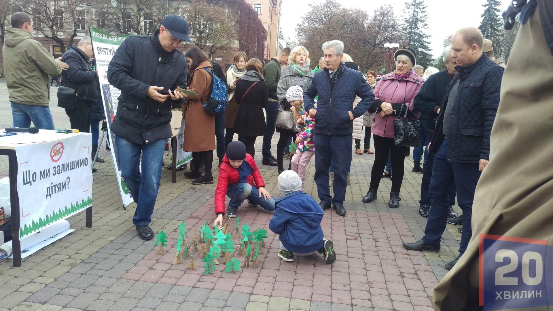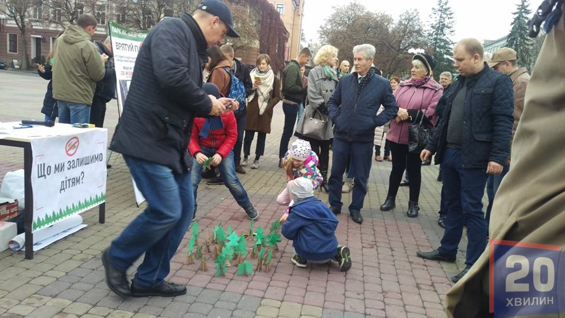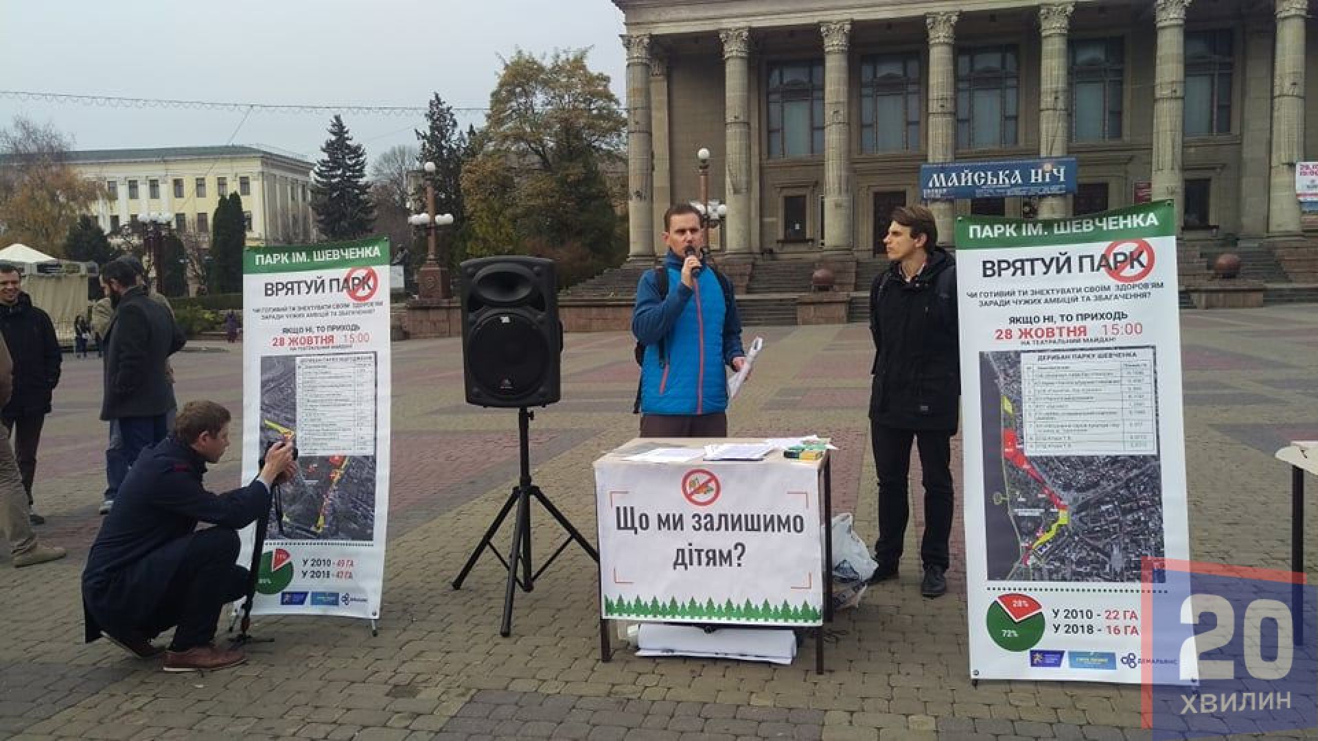 Акція “Врятуй парк” відбувалася на Театральному майдані. Як зазначили організатори, таким чином вони привертають увагу тернополян, влади та правоохоронних структур до масової забудови парків міста.