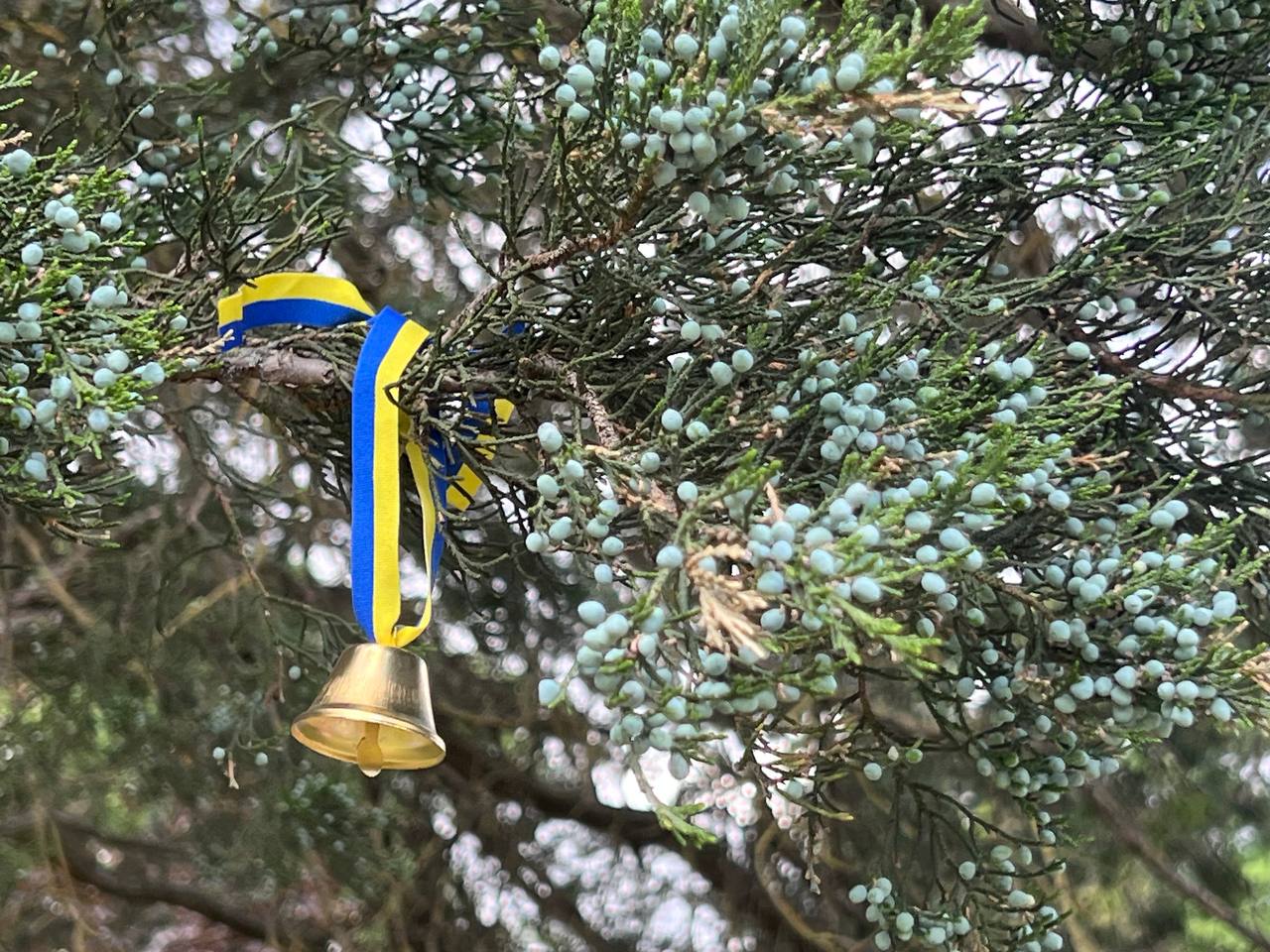 Небайдужі тернополяни прив’язали на дерева дзвіночки, які символізують голоси вбитих маленьких українців. До акції доєднались школярі, їхні батьки, молодь та військові.