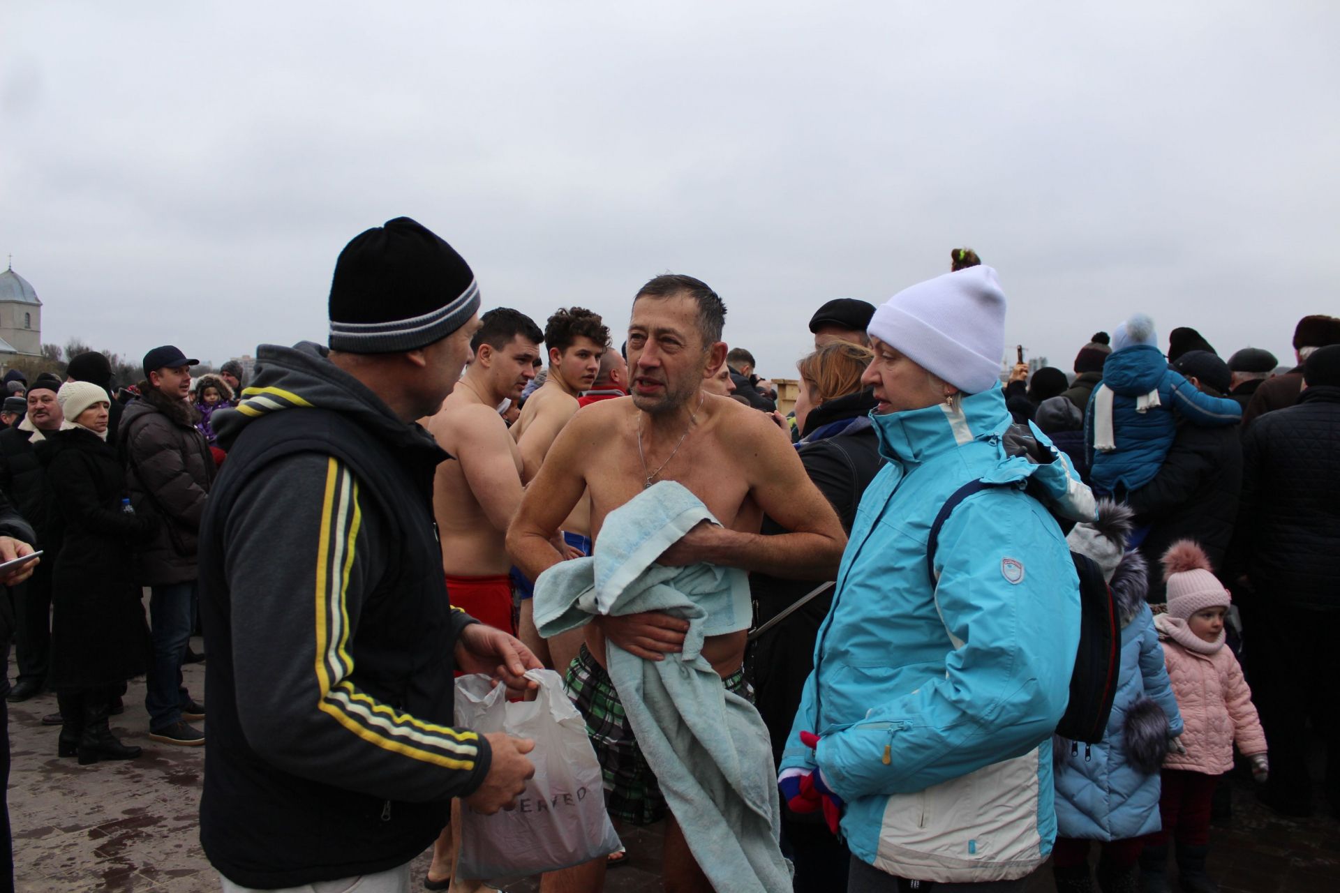 Серед тих, хто пірнав у воду були, як досвідчені моржі з клубу любителів загартування і зимового плавання «Нептун», так і новачки. Наймолодшому учаснику клубу Андрійку 8 років.