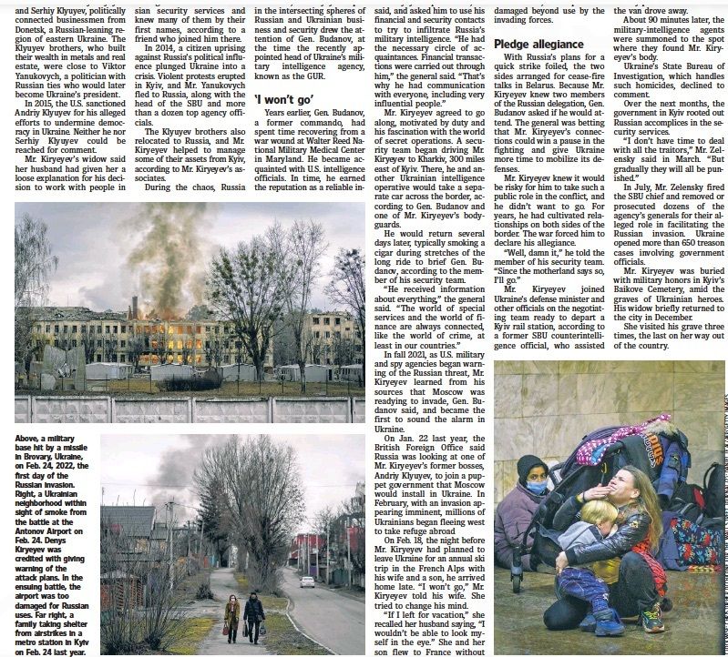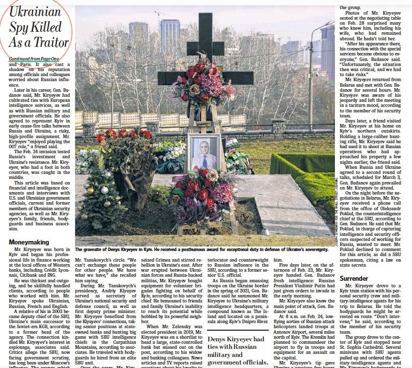 За словами генерала Кирила Буданова, голови військової розвідки України, пан Кірєєв передав інформацію від своїх російських контактів, яка допомогла українським силам успішно захистити свою столицю минулого лютого. «Якби не пан Кірєєв, швидше за все, Київ був би взятий», – сказав генерал.