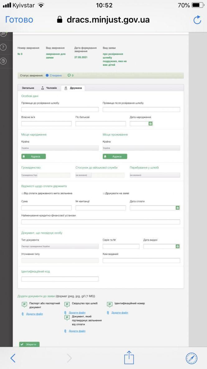 На веб-порталі діє два види заяв про розірвання шлюбу: