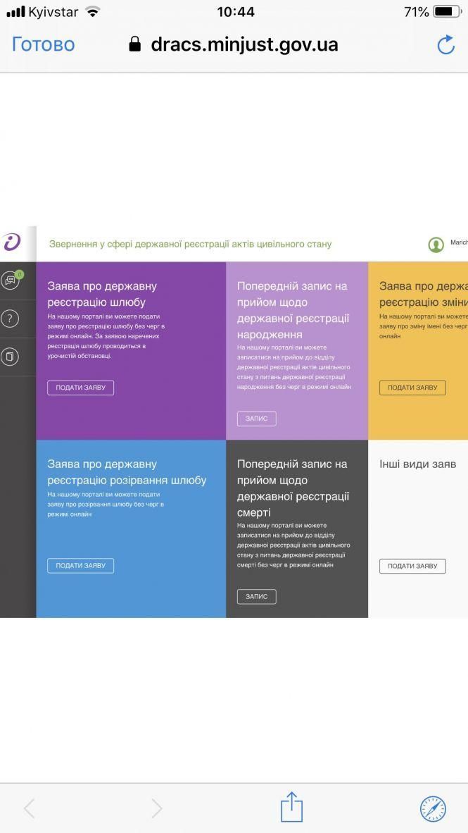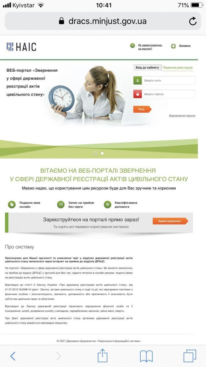 Система пропонує для зручності та уникнення черг у відділах державної реєстрації актів цивільного стану записатися через Інтернет на прийом до відділів РАЦС.