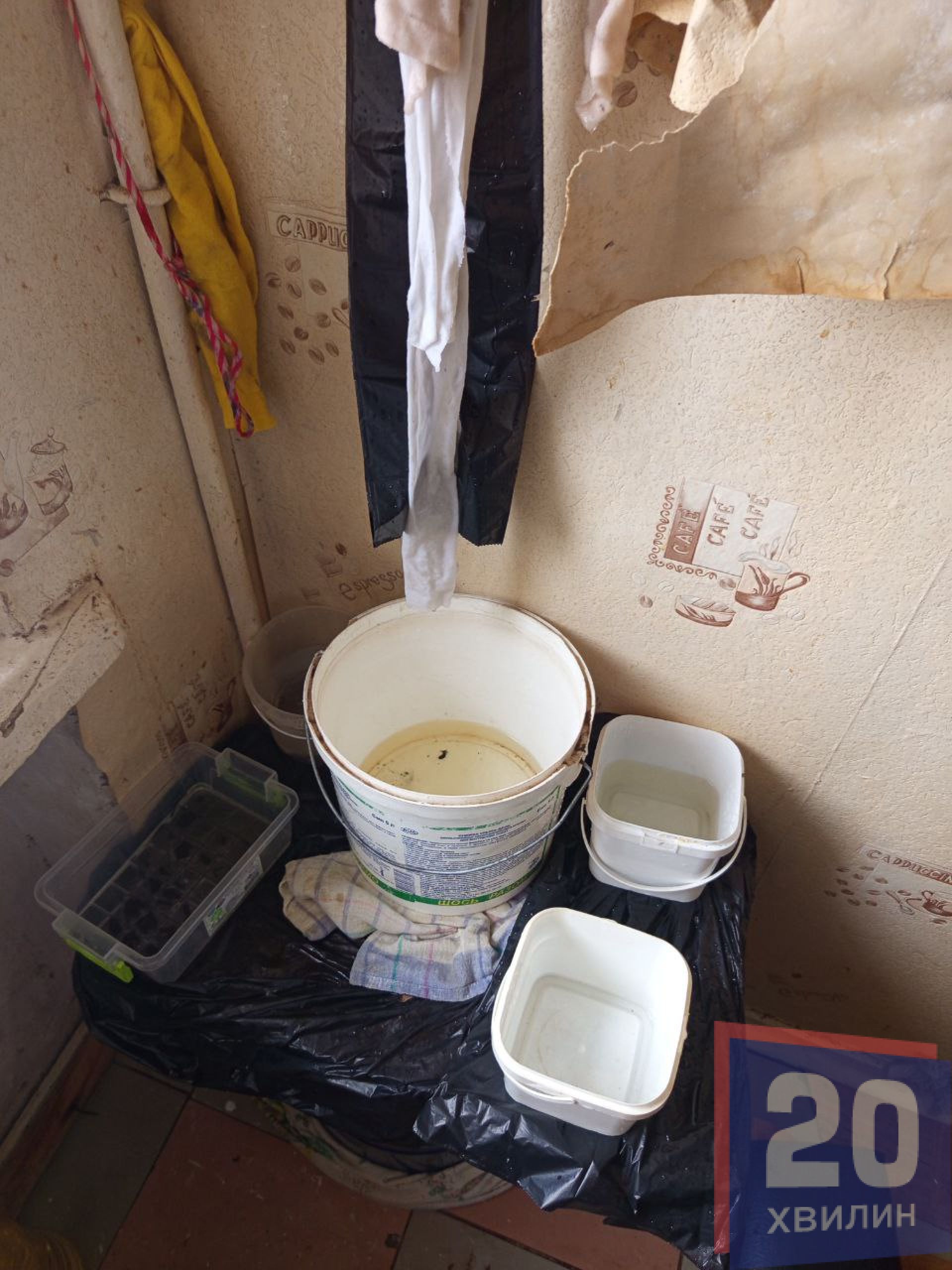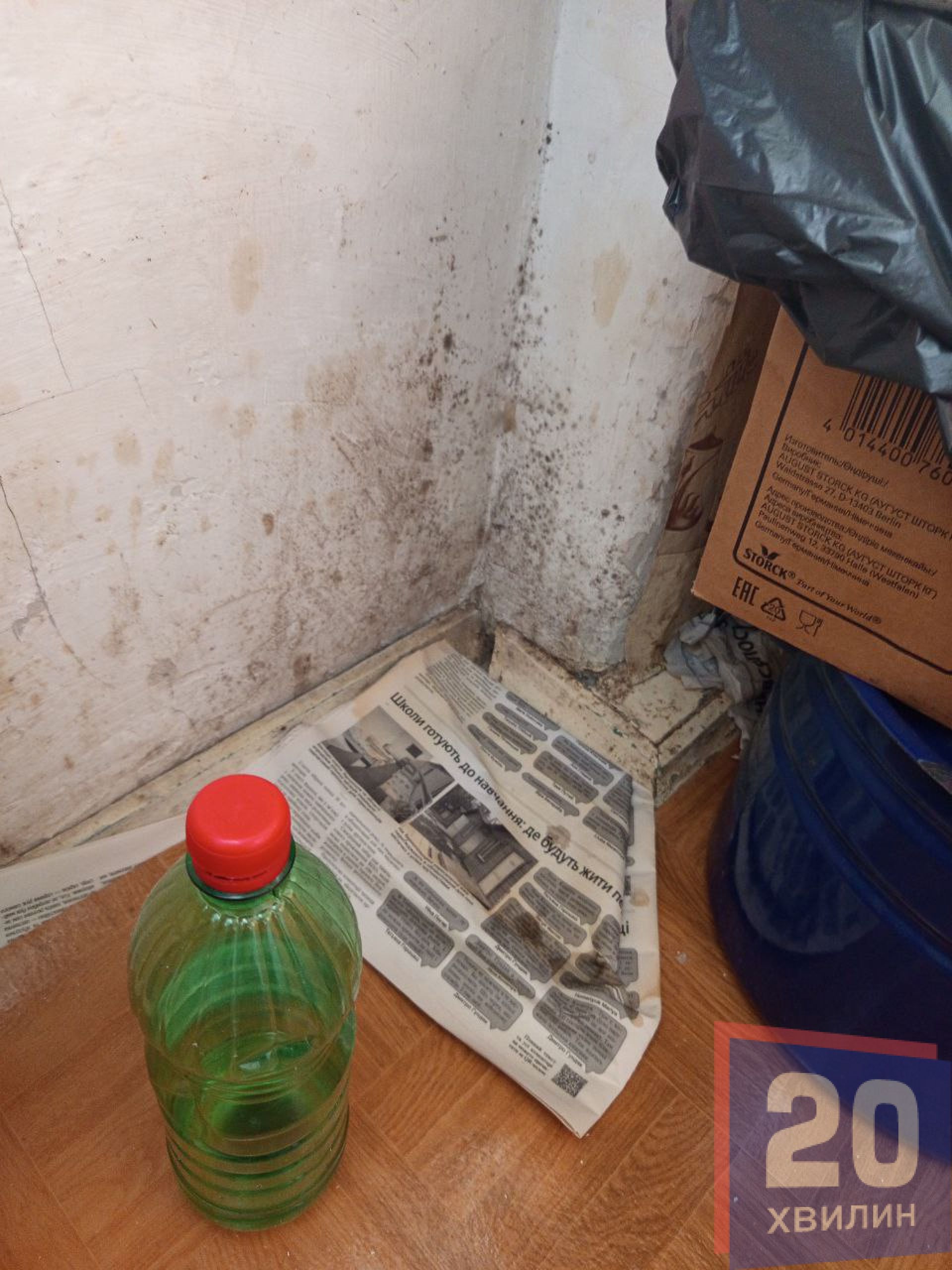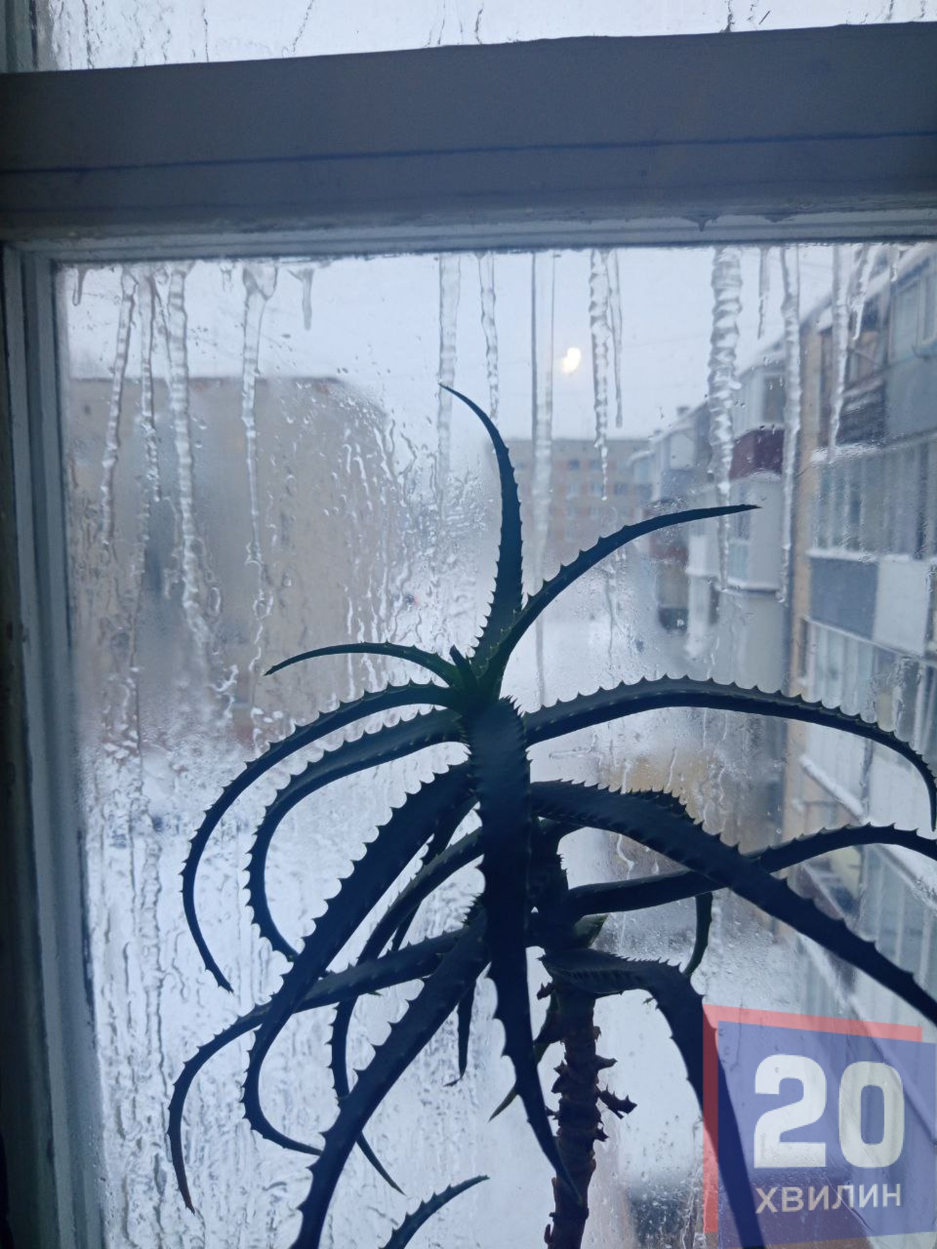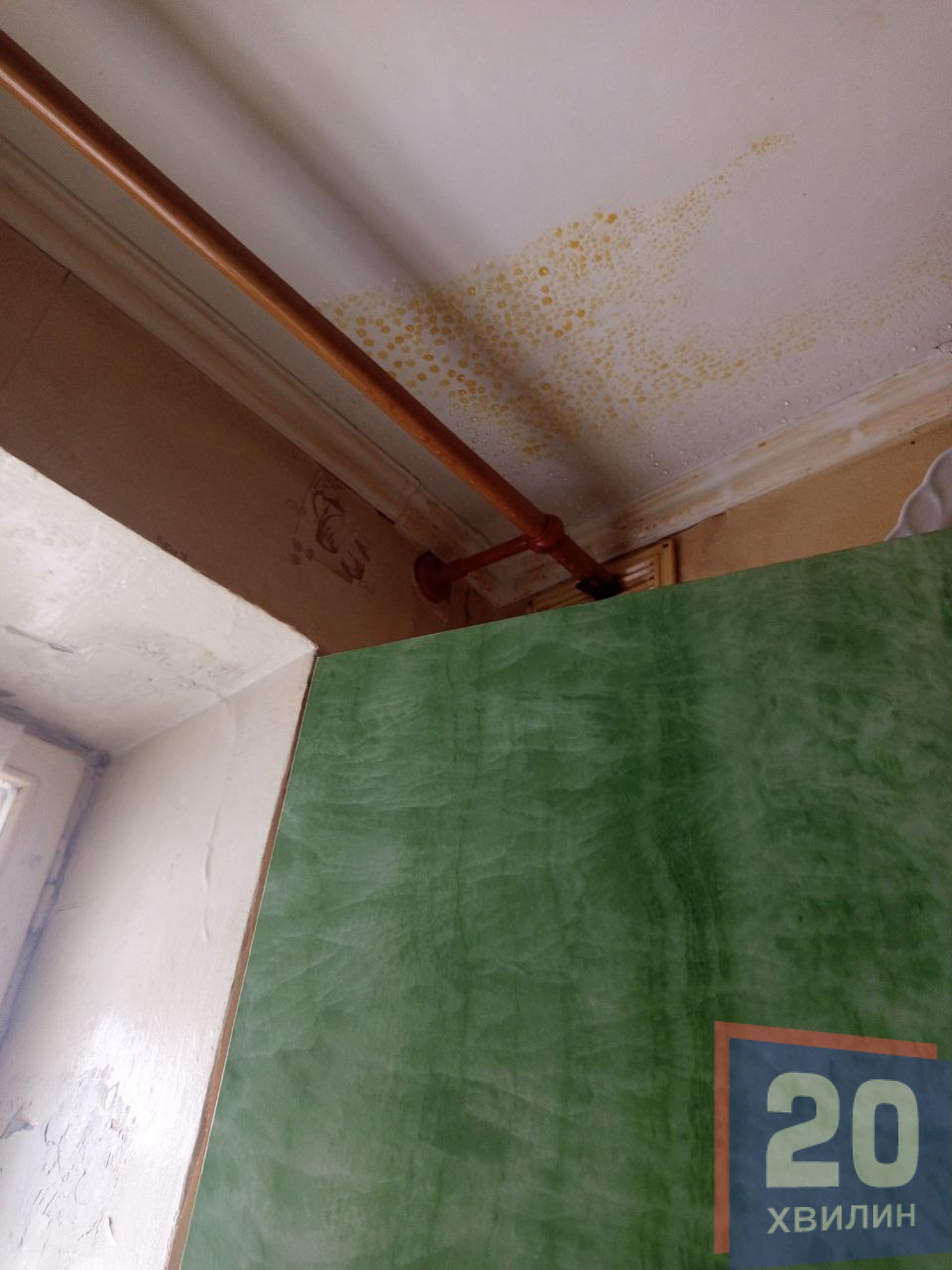 — Вона текла по стіні у кухні, з вікна, а згодом почала капати навіть зі світильника, — каже пані Олена. — Я всю ніч збирала воду в миски, не спала, сиділа при відкритій кватирці без світла, з ліхтариком. У квартирі холодно, постійна волога, є ризик пошкодження техніки. Вже скоро на холодильник потече.