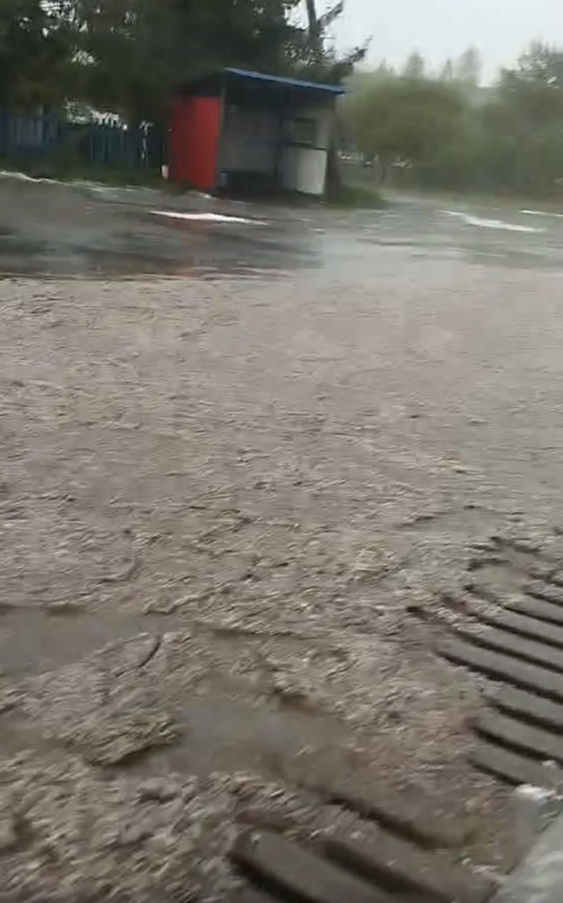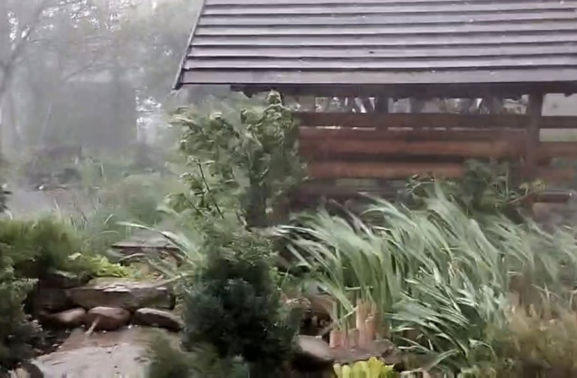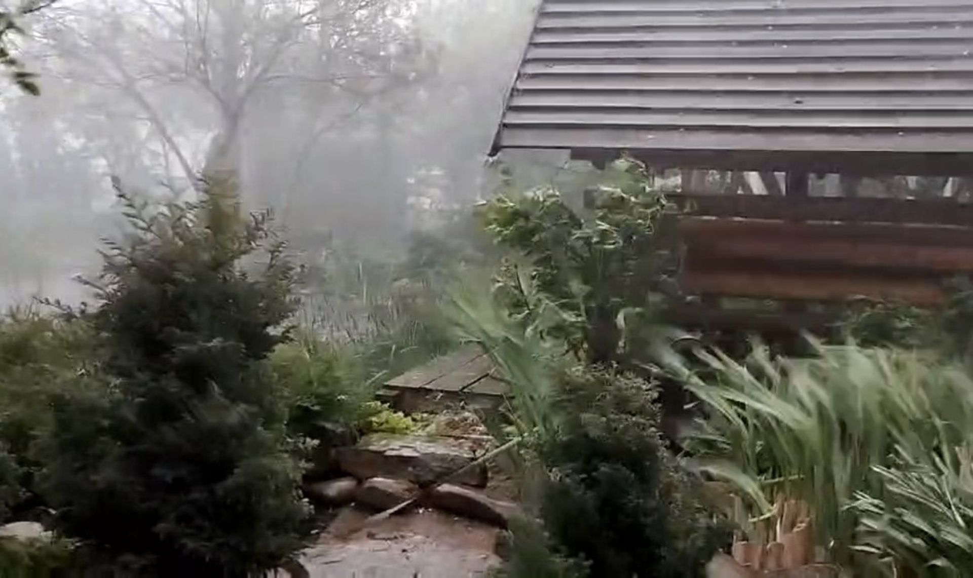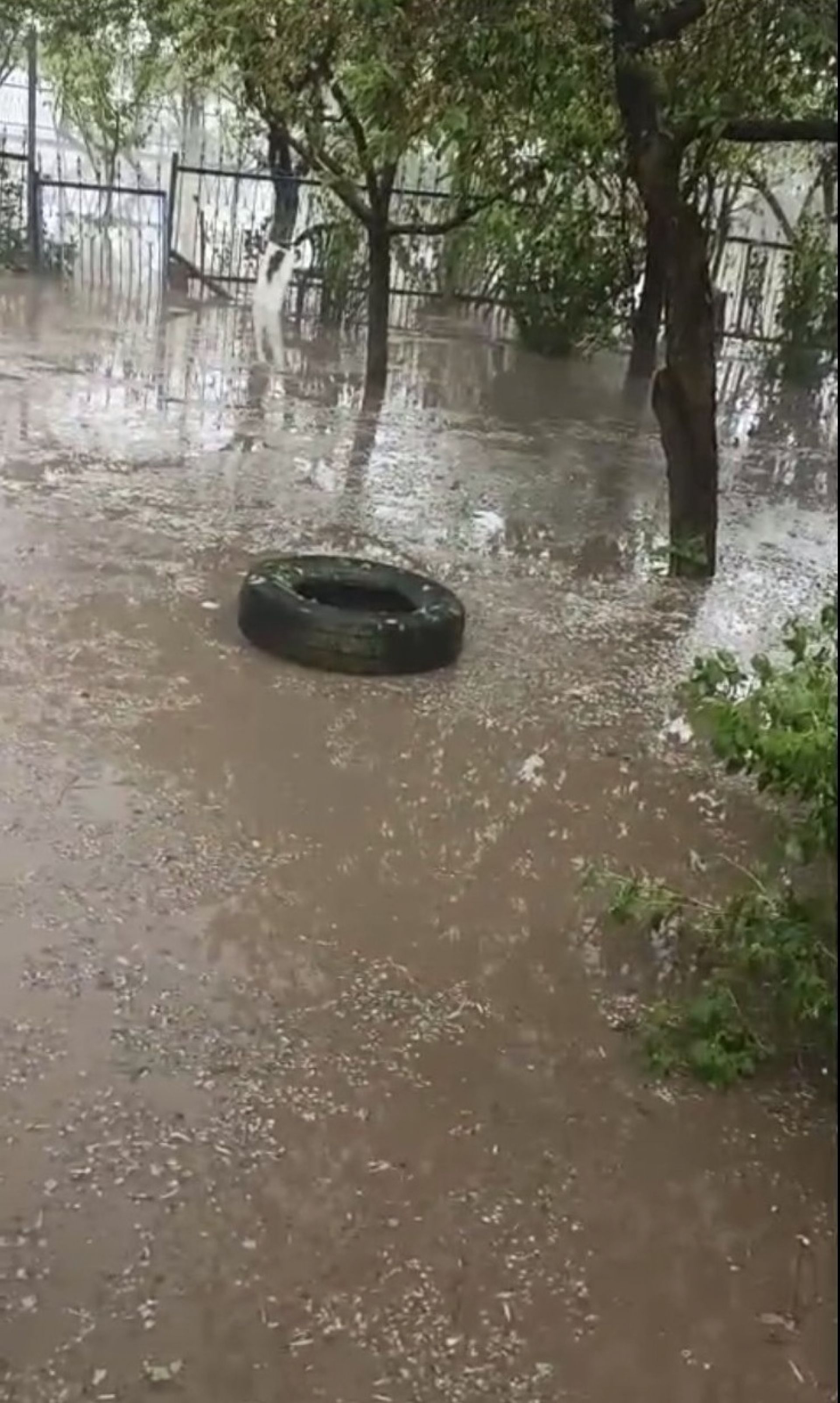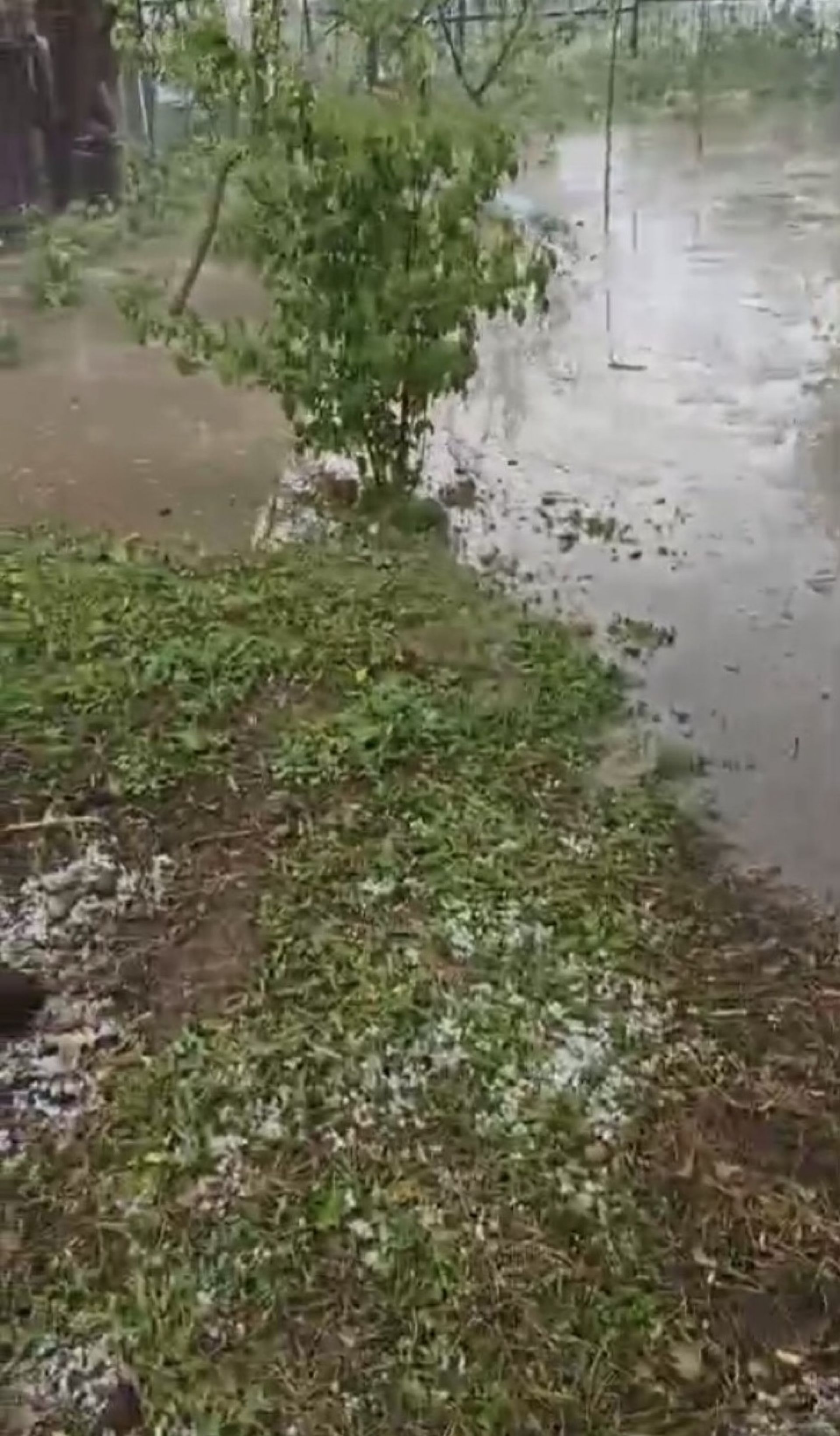 Сильний дощ із градом пішов близько 15 год. 4 травня. Потім все стишилося, а через годину все почалося із новою силою.