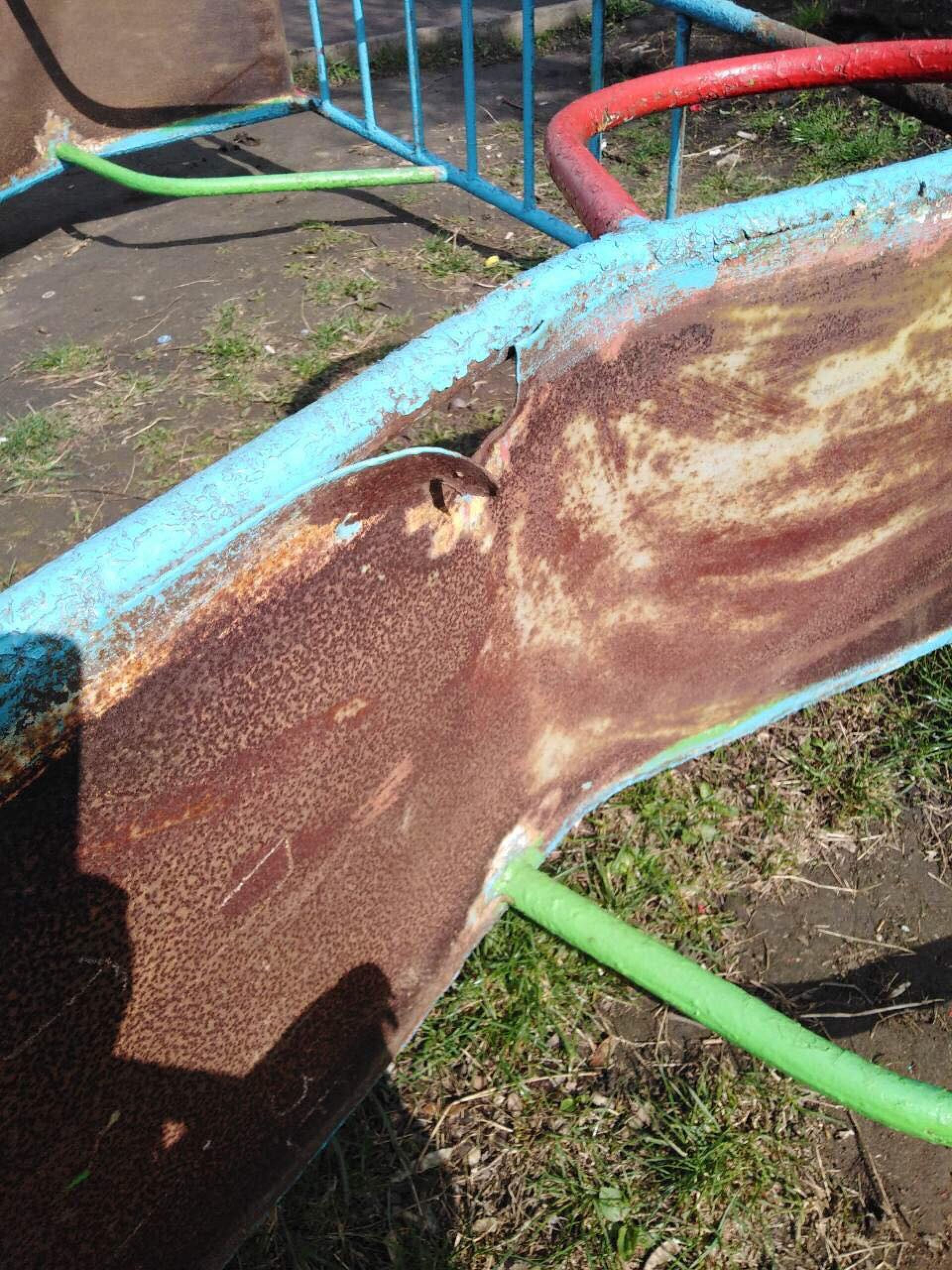 Голова ОСББ підтверджує, що вони забрали із тієї території, яка тепер належить їм, три гойдалки, але, каже, вони віджили вже своє.