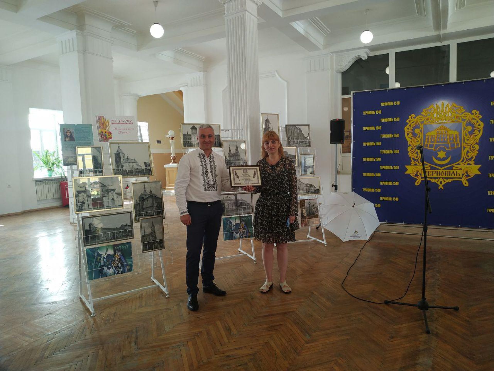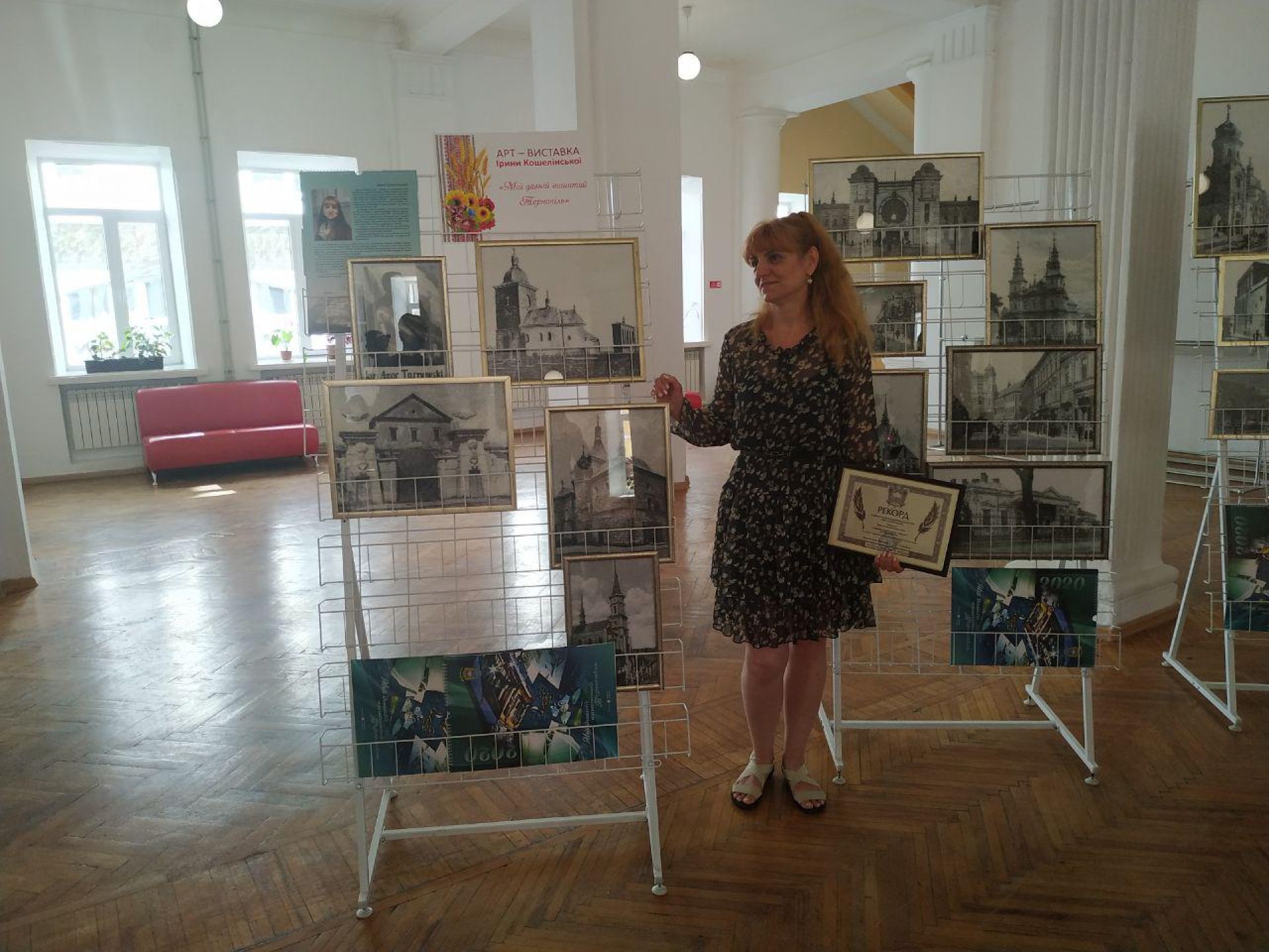 Ірина Кошелінська представила на виставку картини, на яких зображено культові споруди та місця Тернополя: Єзуїтський костел, тристоронній годинник ще довоєнних часів, вхід у парк Шевченка тощо. Деякі зі споруд втрачені і залишилися тільки на фотографіях і, звісно, на картинах майстрині.