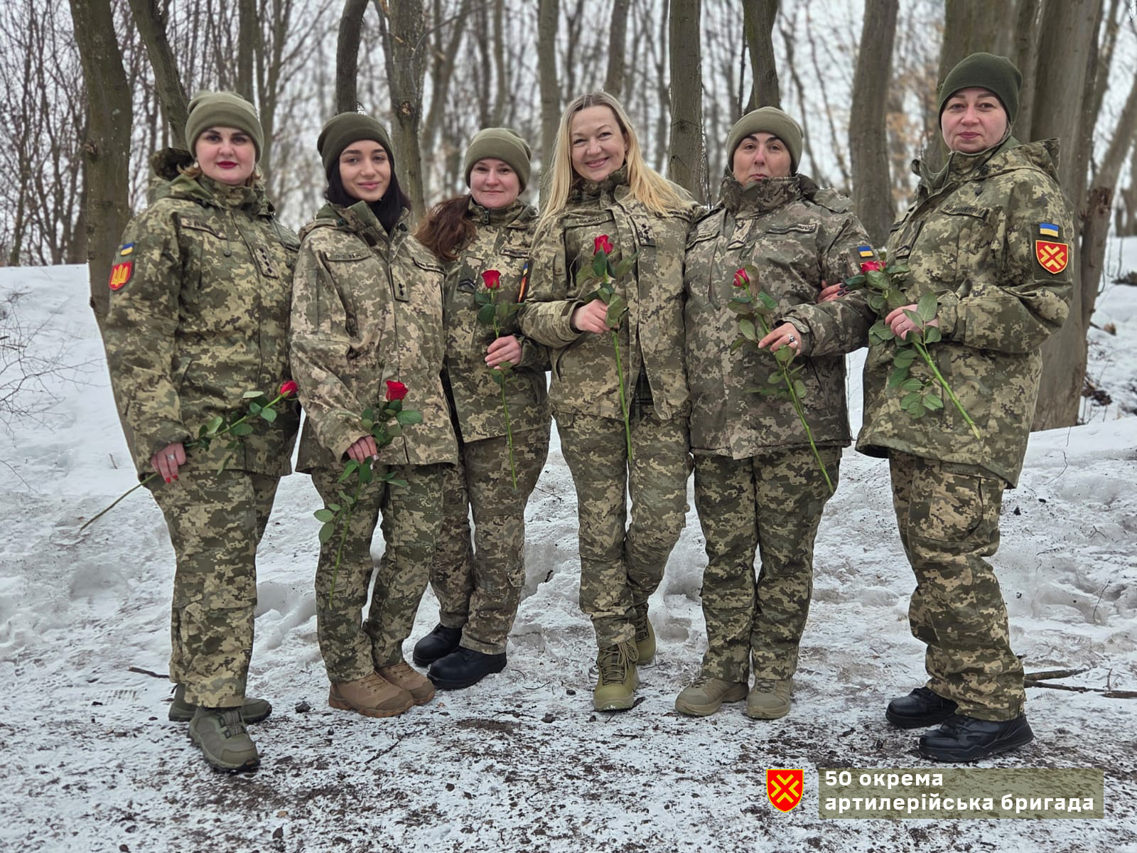 У День української жінки 25 лютого військовослужбоці 50 окремої артилерійської бригади привітали зі святом своїх посестр і подякували за службу.