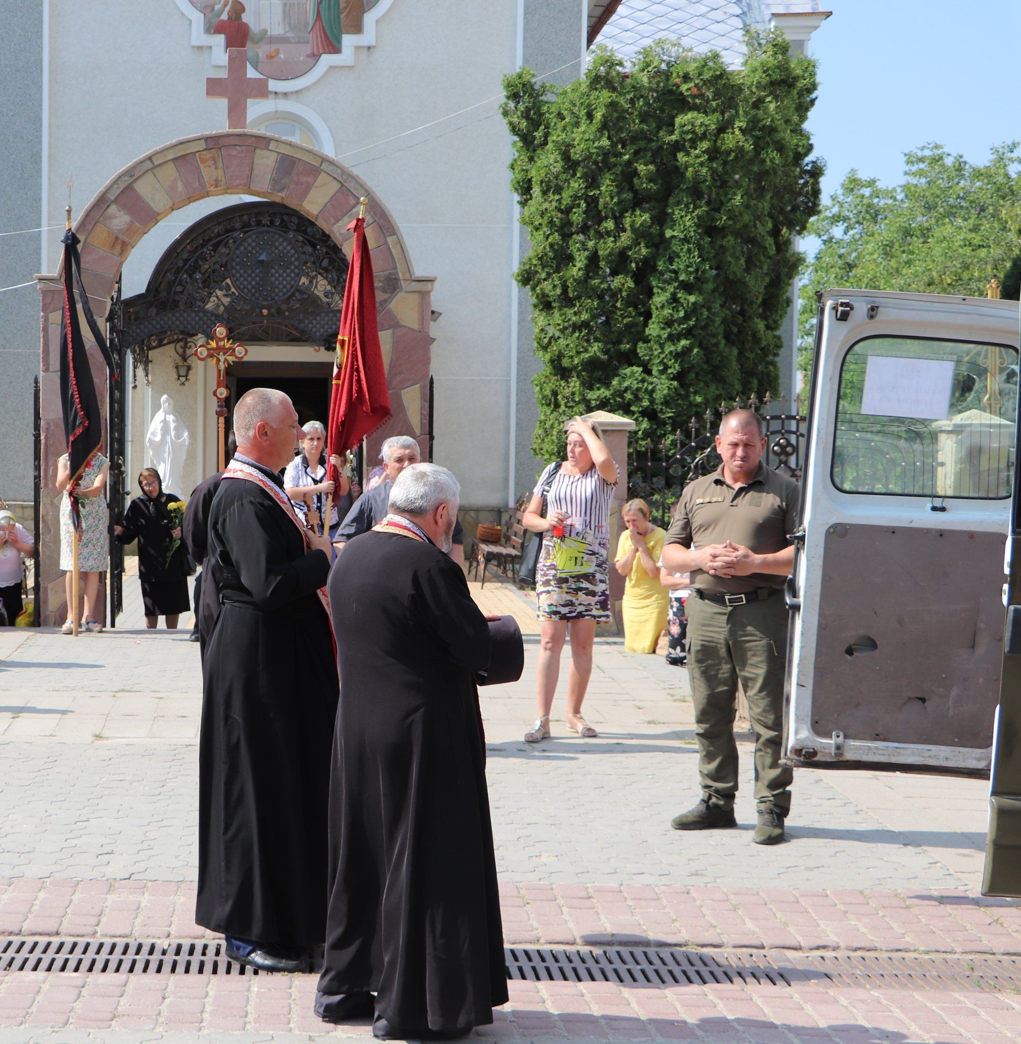 Всечесні отці церков міста разом з присутніми помолились за душу молодого захисника України. Для нього лунав дзвінок з рідної школи, а по місті сумно звучали слова «Плине кача».