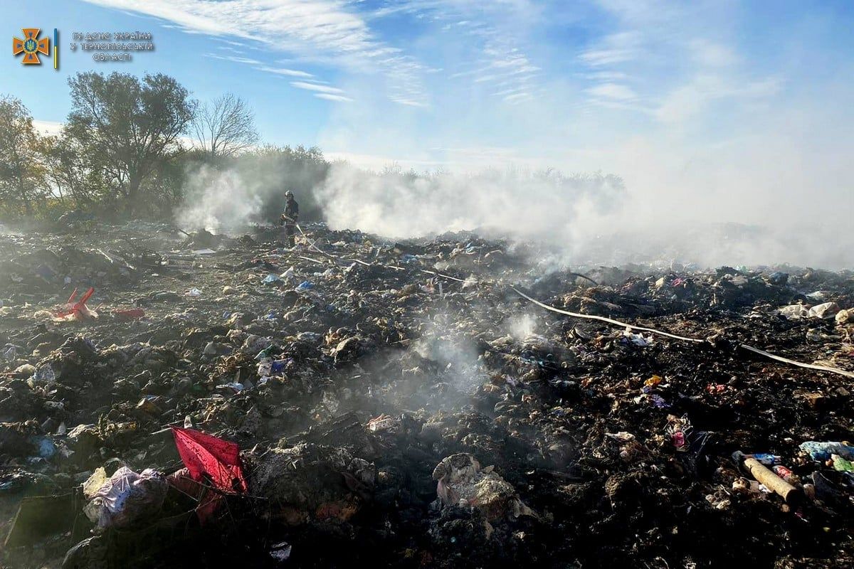 Ліквідація пожежі сміття на території полігону твердих побутових відходів у Бучачі триває.
