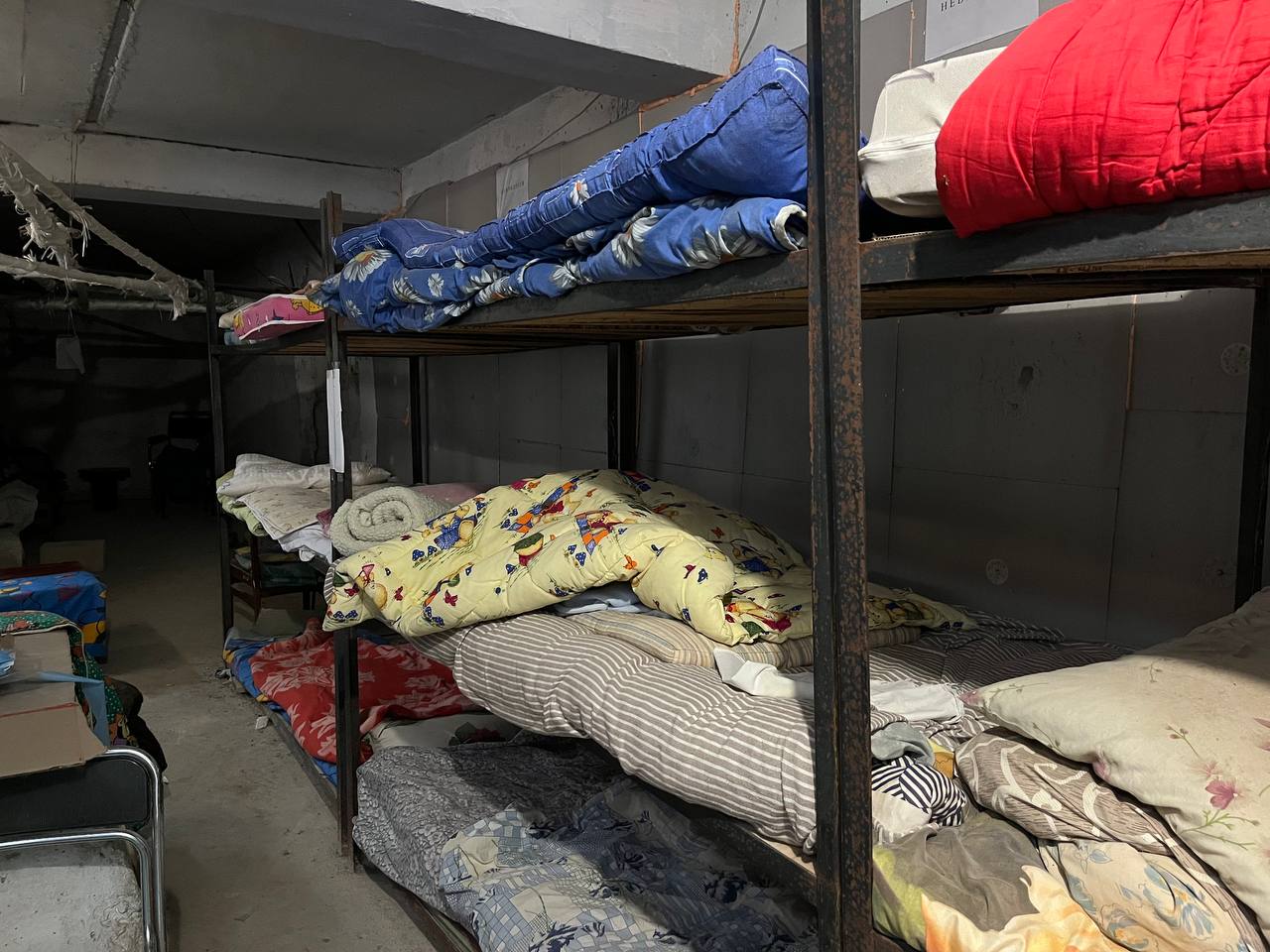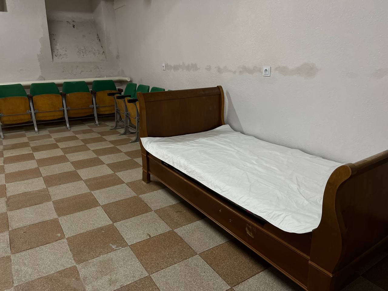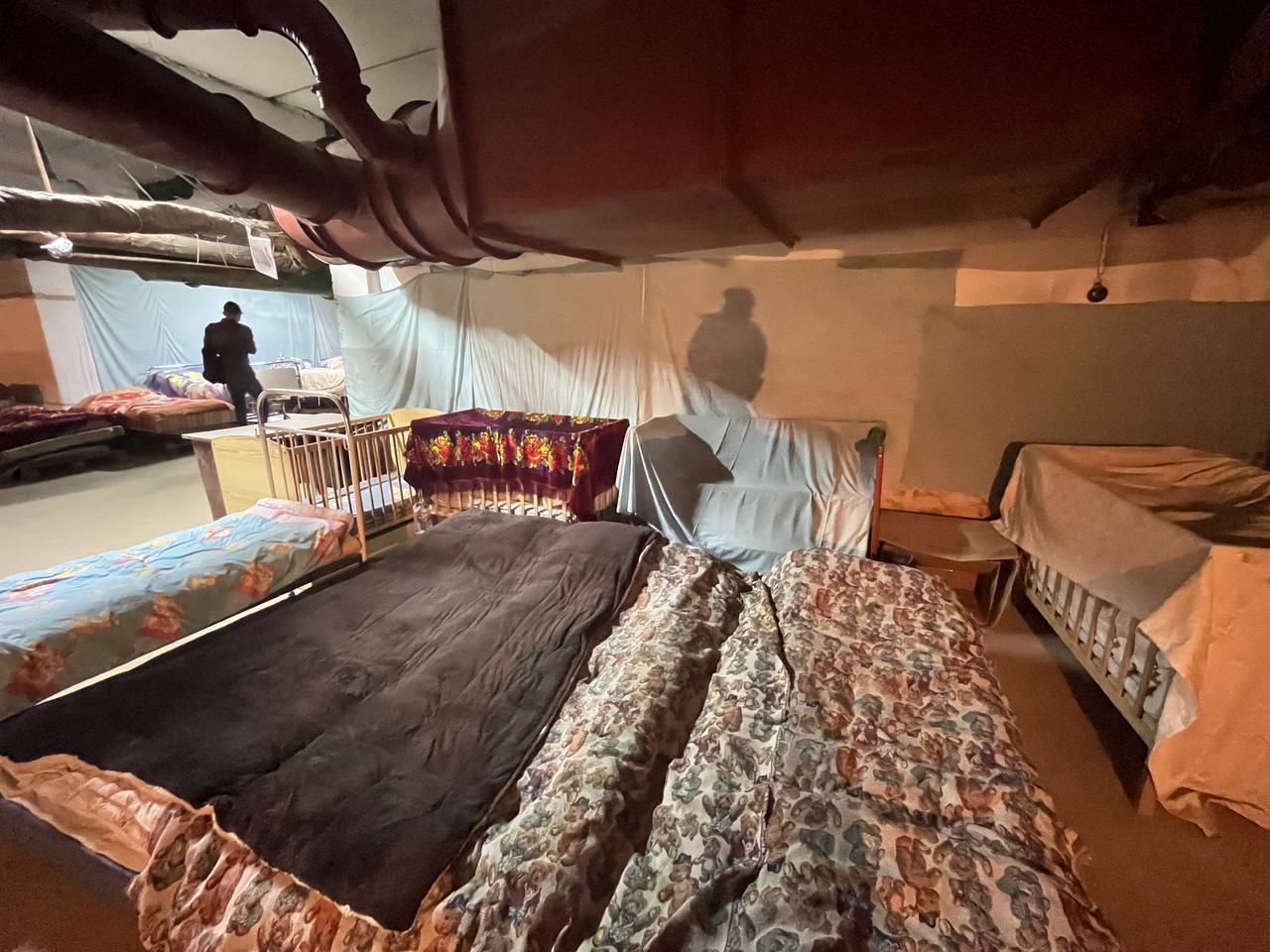 Там встановили старі ліжка, стіни закрили ковдрами та шторами. У підвалі кілька відділених приміщень для туалетів, щоправда, замість унітазів – відра.