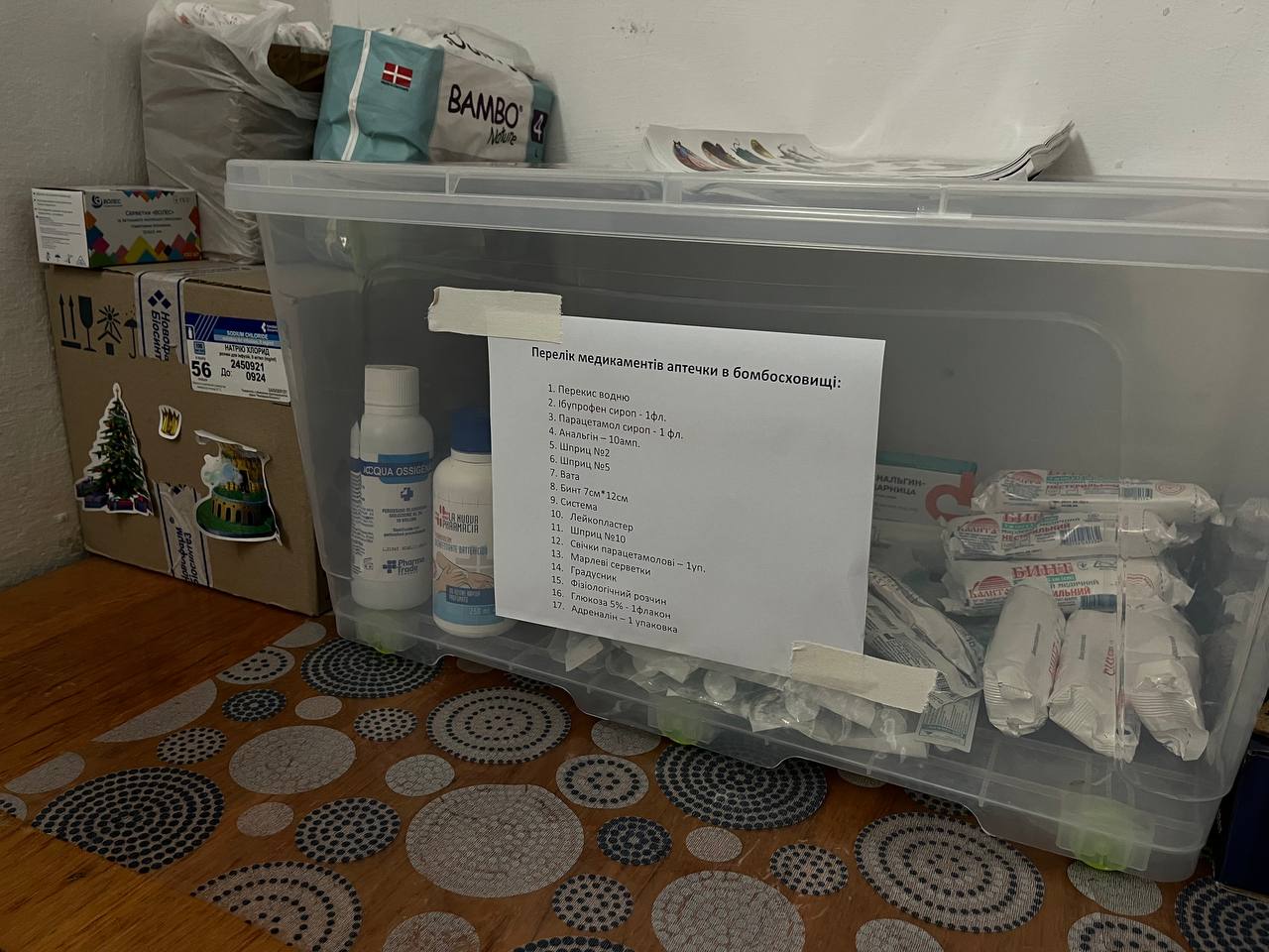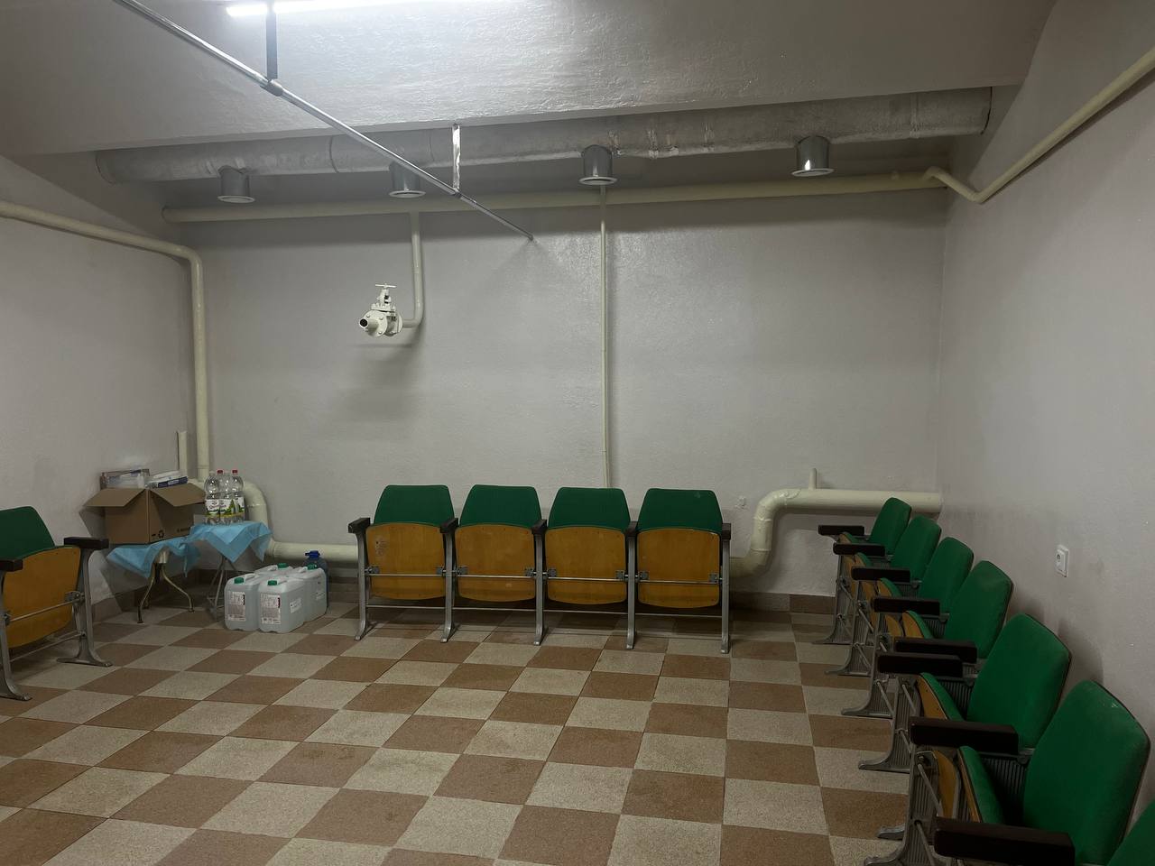 У коридорі сховища встановили крісла для сидіння, а в окремій кімнаті — шість ліжок з подушками, ковдрами та постільною білизною. Також там є холодильник, запас води та медикаменти, складені в один великий контейнер.