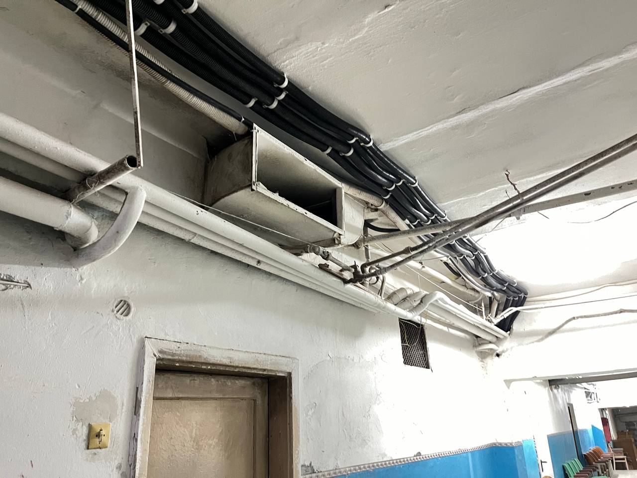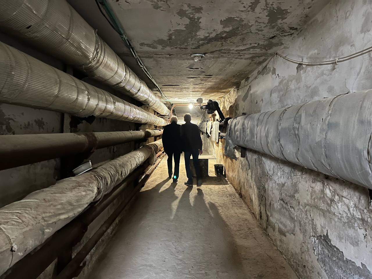 З ліфта до укриття ще кілька хвилин довгими та старими коридорами. Зверху помічаємо каналізаційні труби, які обгорнули спеціальною плівкою. А також подекуди чималі дірки від старих труб.