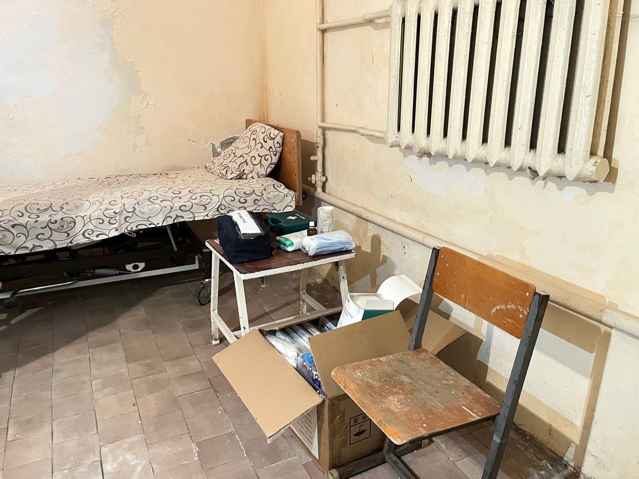 У кімнатах також оббитий кахель та є пліснява. Подекуди знайшли пластикові пляшки, бутлі з написами «Чиста вода». Аптечки, інтернет, медичне обладнання – відсутні.