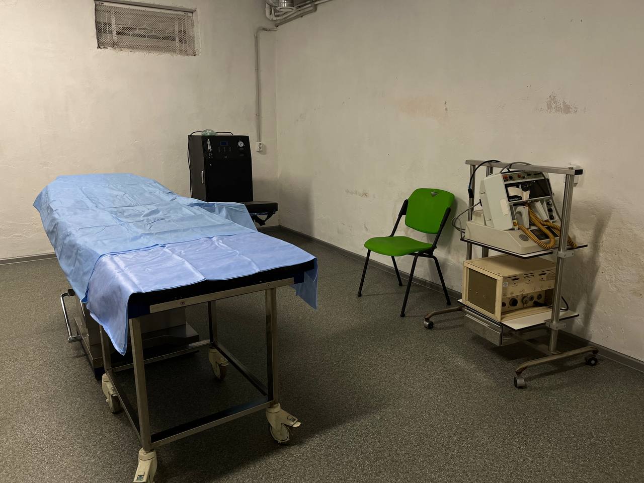 Нарешті нам вдалося побачити укриття, яке було за замками у січні 2023 року. Кімнати у підвалі умовно розділили на відділення «Педіатрія», «Кардіологія», «Операційна», «Дитинство та пологова діяльність» та інші. Зі слів медичного директора з медичного обслуговування населення Віктора Кміти, так зручніше для всіх працівників, адже вони знають, за яку територію відповідають і що там ще варто зробити.
