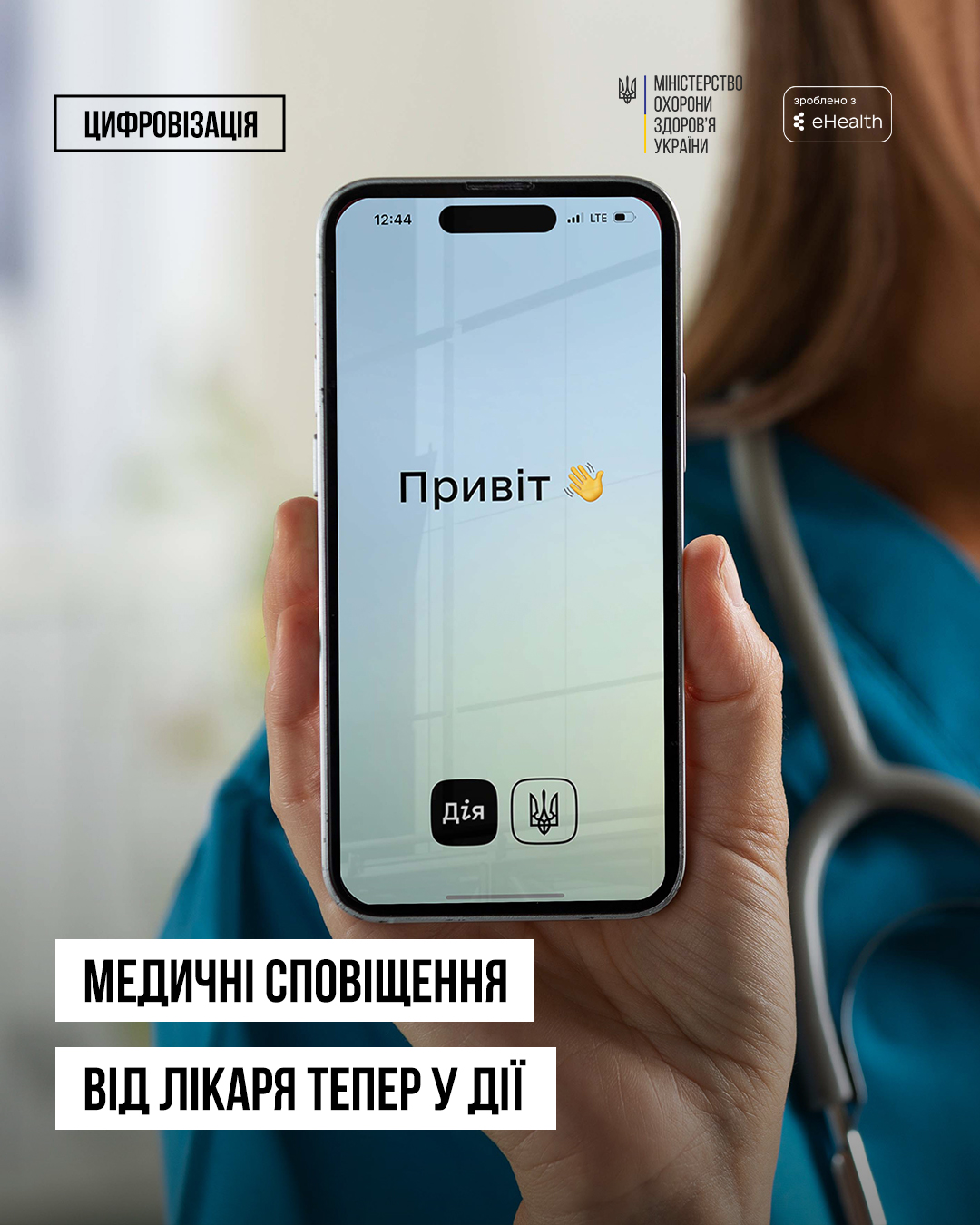 — МОЗ спільно з НСЗУ Національна служба здоров'я України та Міністерство цифрової трансформації України запускають новий канал інформування пацієнтів — push-сповіщення в застосунку Дія. Відтепер інформацію від електронної системи охорони здоров'я про е-рецепт на ліки та е-направлення можна отримувати безпосередньо у застосунку, — йдеться в повідомленні.