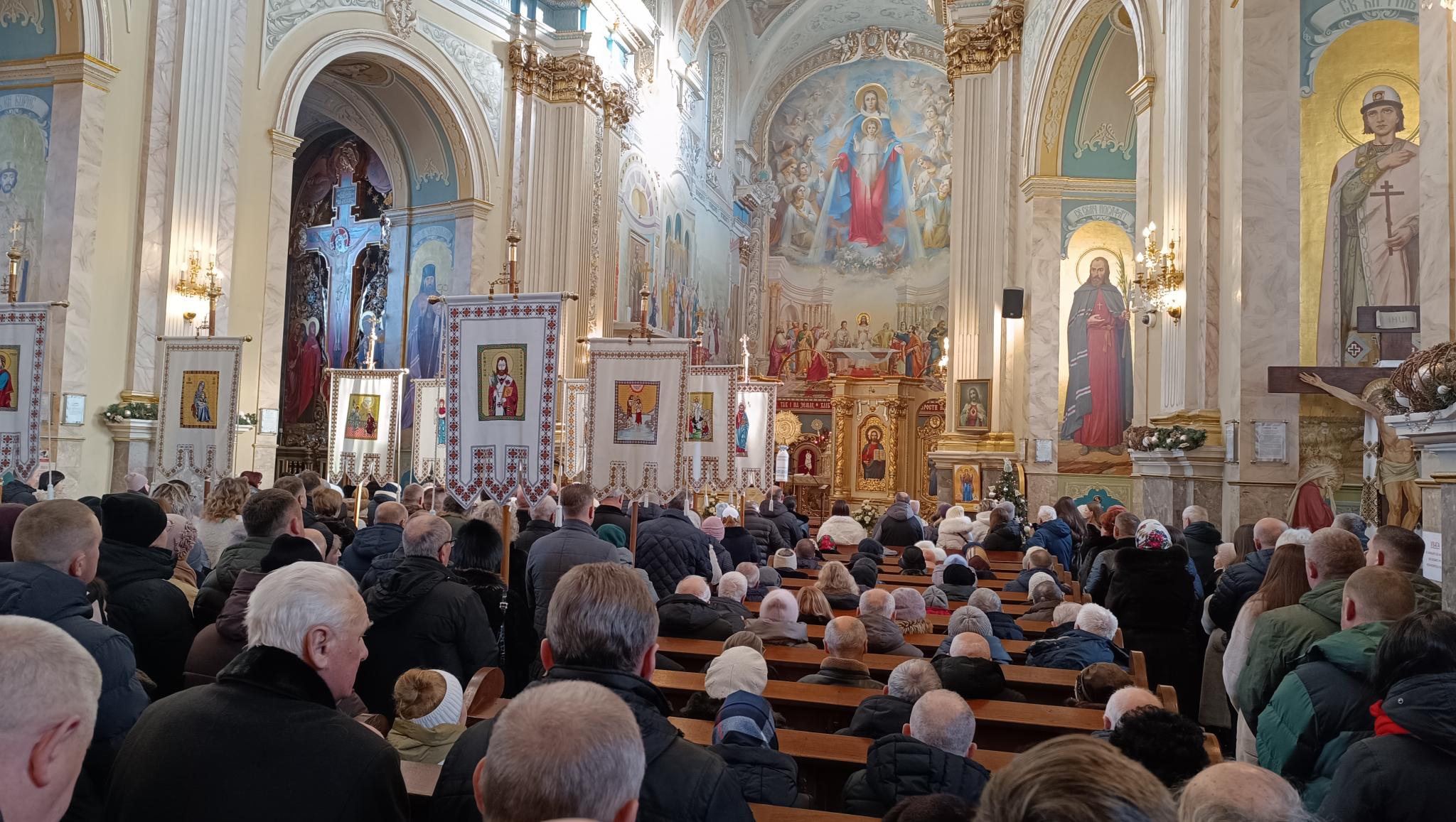 «В Рамі чути голос, і плач, і тяжке ридання; Рахиль плаче за дітьми своїми і не хоче, щоб її втішали, бо їх немає». Та серед темряви, цієї темряви, пробивається небесне світло Христа», — говорить слова пророка священник під час богослужіння у в Архикатедральному соборі.