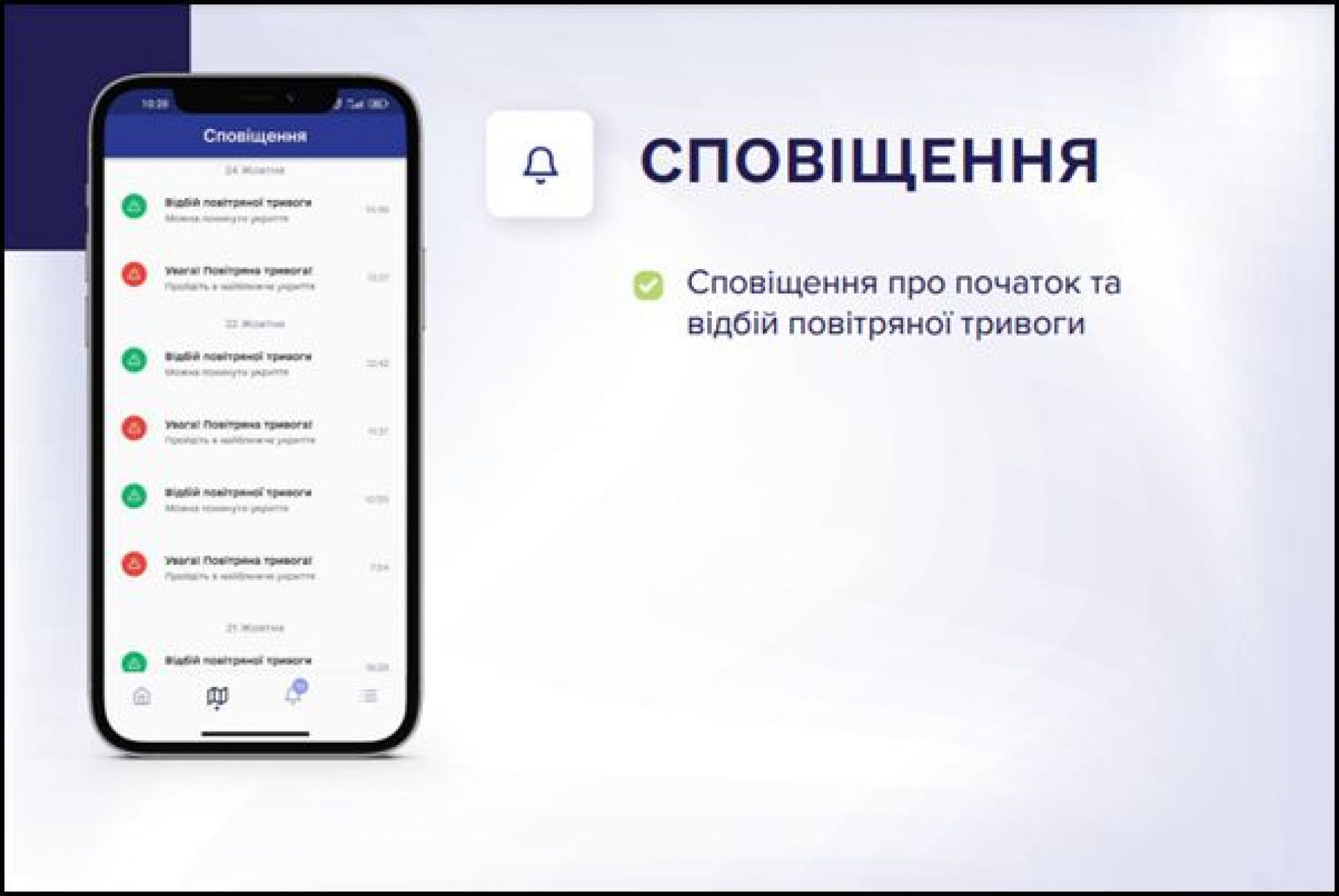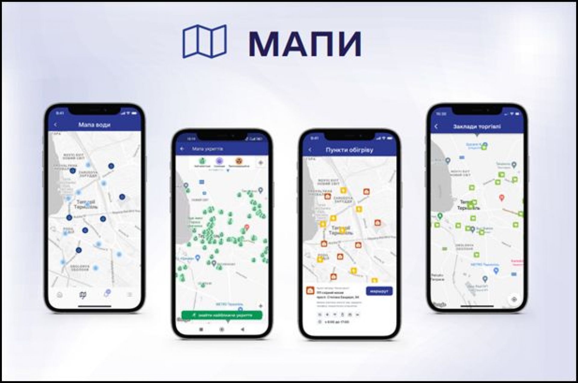 - декілька видів інтерактивних мап: мапа пунктів обігріву; мапа закладів торгівлі, що працюють без світла; мапа колонок-качалок питної води; мапа укриттів.