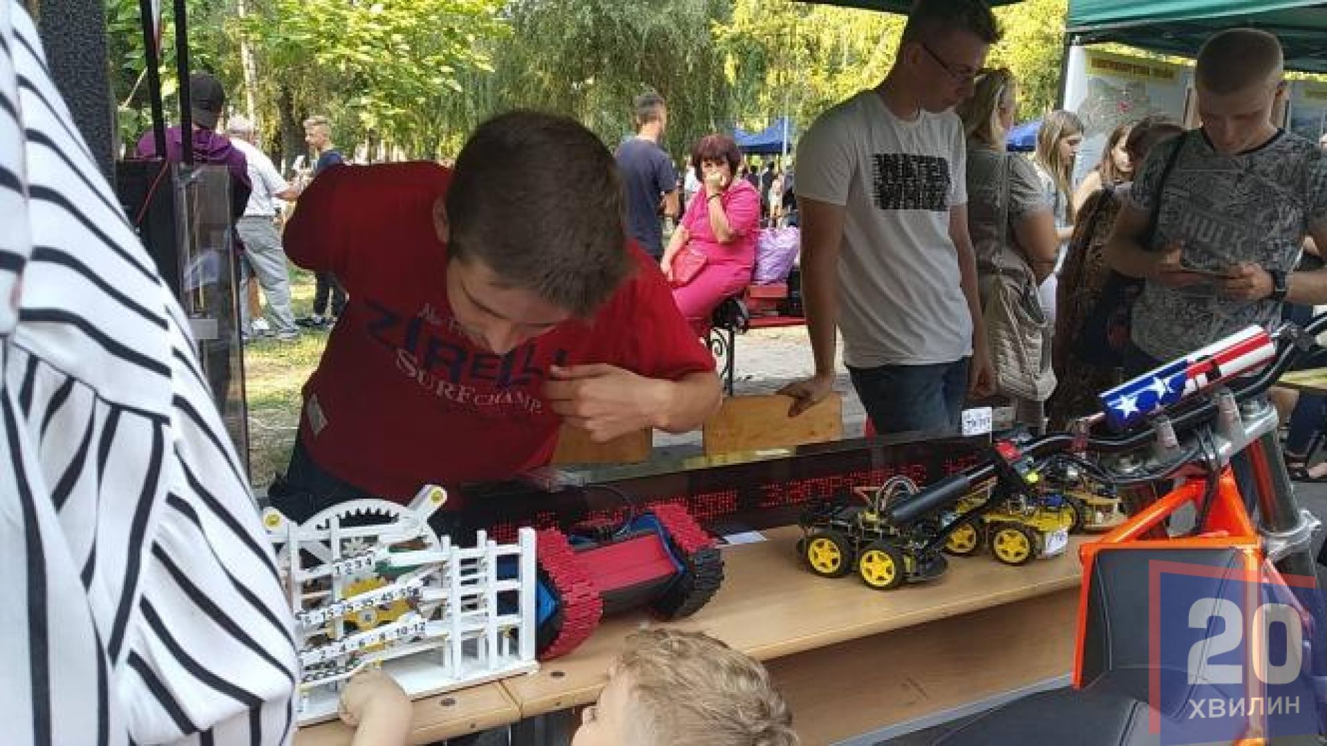 Біля кожної локації - велитенські черги. Тут діти можуть спробувати проводити досліди, створювати щось власними руками та навчитись чогось нового. Захопливо учні розглядали хімічні майстер-класи, які проводили студенти медичного коледжу, малюки могли спробувати себе у ролі поліцейських та навіть посидіти у авто патрульних. На галявинах парку для дітей зробили відпочинкові зони.
