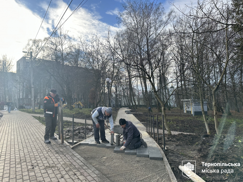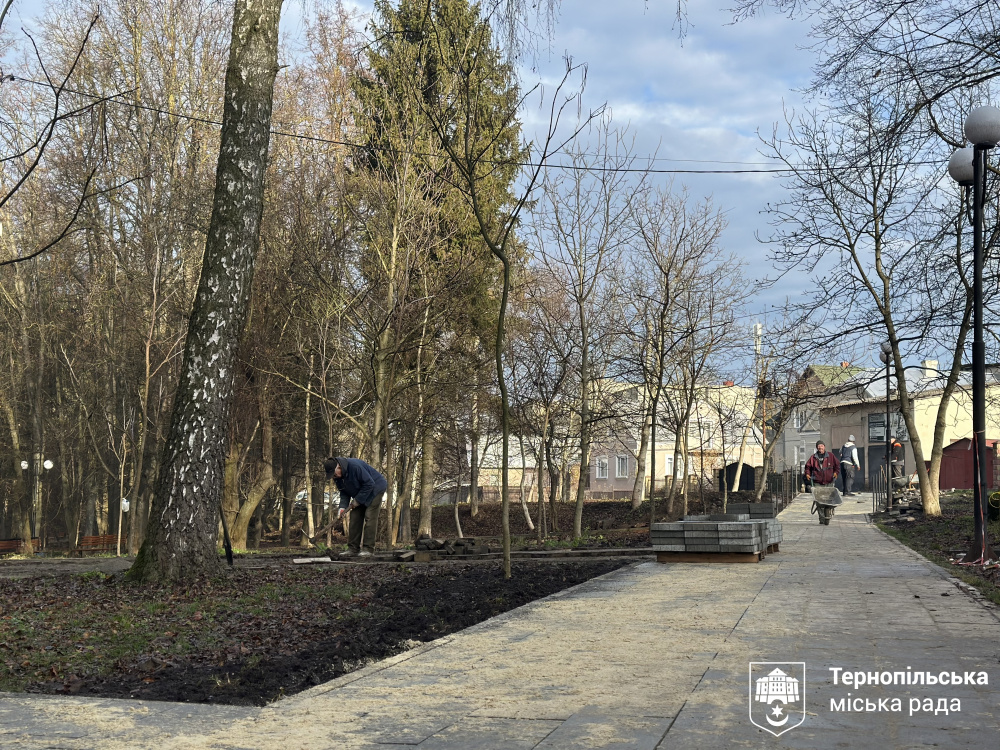 Паралельно в парку оновлюють інфраструктуру: на пішохідній доріжці вже практично вклали нову бруківку, яка відповідає стандартам безбар’єрності. Окрім того, тут буде встановлено інклюзивні лавки, урни для сміття, проведено оновлення газонів. Роботи здійснюють в рамках «Портфоліо міських перетворень «Зелене та комфортне місто Тернопіль» Ініціативи «Мери за економічне зростання», що впроваджується Програмою розвитку ООН (ПРООН) в Україні та фінансується Європейським Союзом.