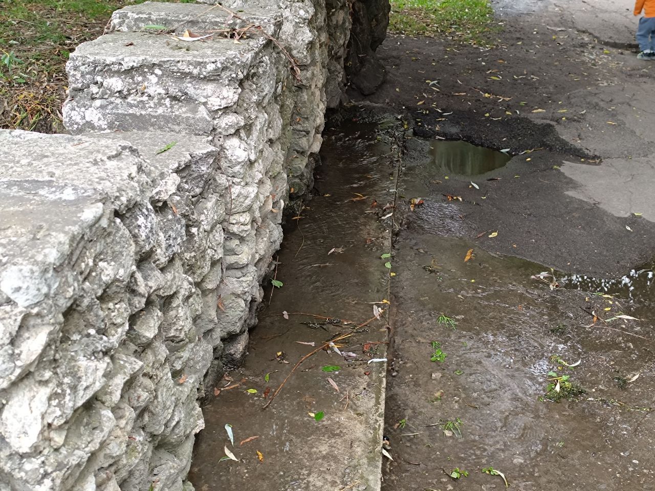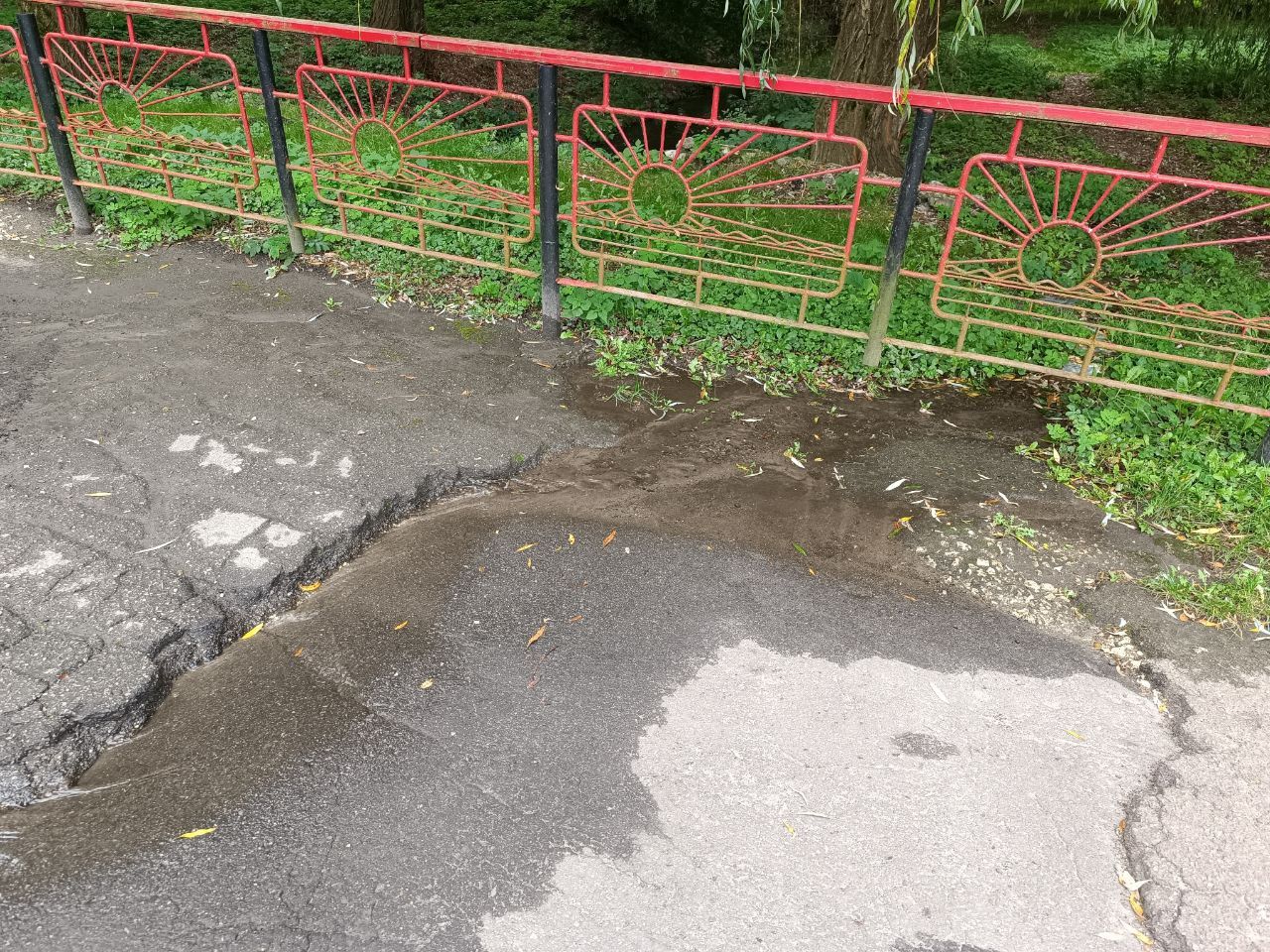 Тернополяни помітили, як неподалік клубу любителів загартовування «Нептун» у водомі навколо Козацького острова піднявся рівень води. Вона почала протікати через кам'яний міст на тротуар. вода стікає на іншу сторону тротуару.