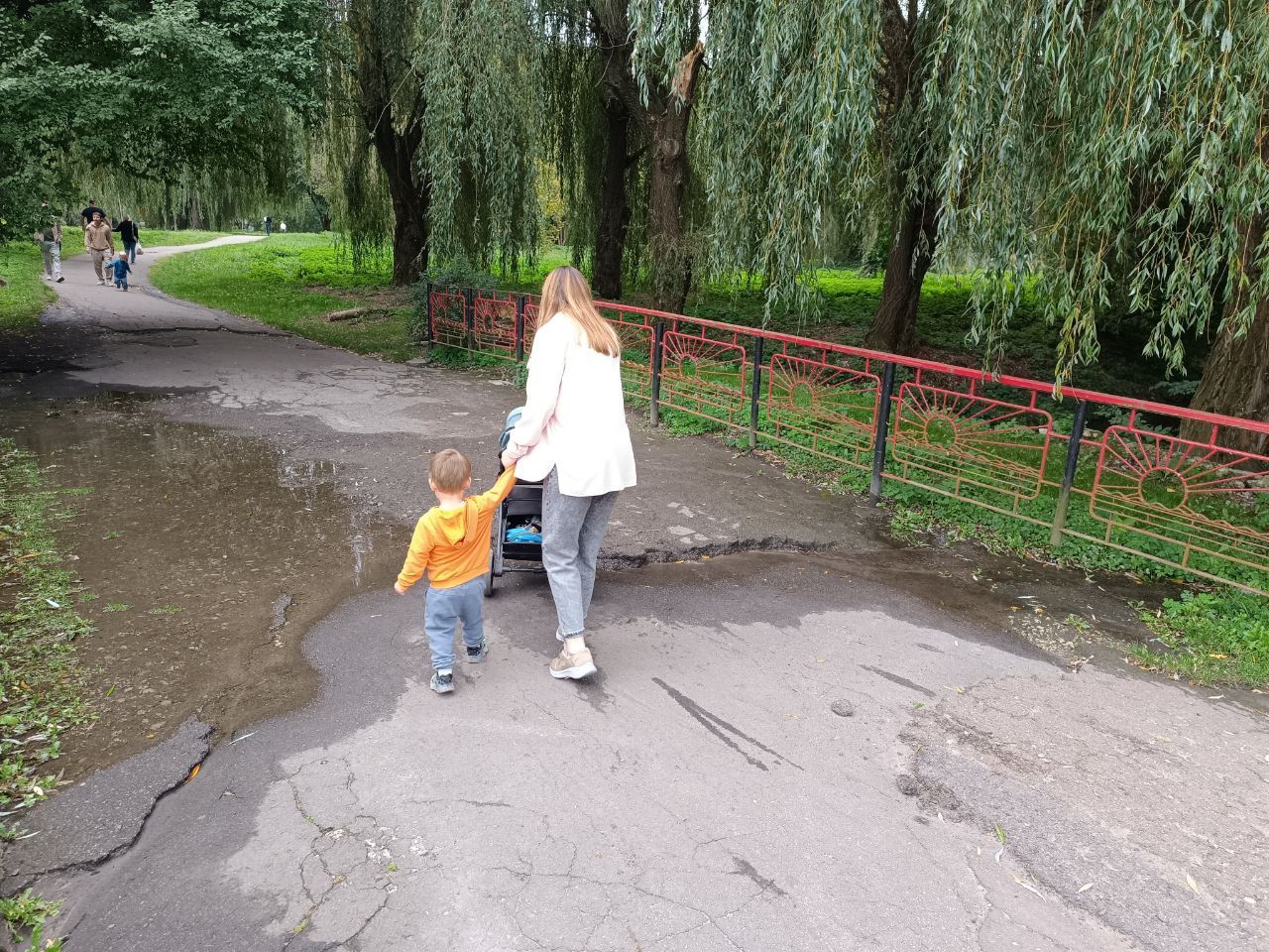 У Гідропарку піднявся рівень води. Через це деякі штучні водойми почали перетікати на тротуар.