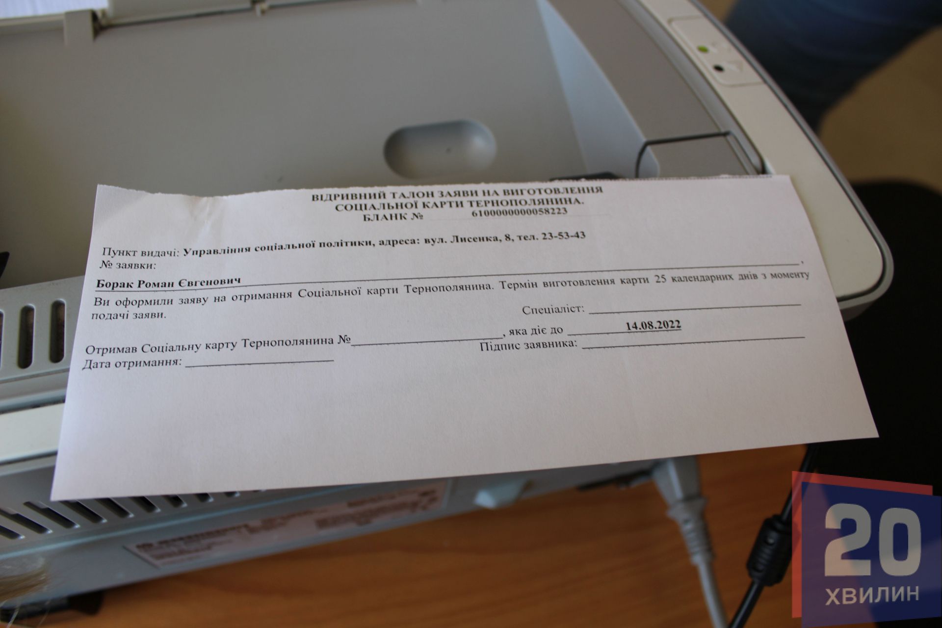 Щоб пенсіонери змогли отримати "Карту тернополянина", їм потрібно принести в управління соціальної політики на вул. Лисенка, 8 паспорт, ідентифікаційний код та пенсійне посвідчення. Вони отримують відривний талончик і через місяць має прийти смс-повідомлення про те, що карта готова. Для пенсіонерів ця послуга безкоштовна. Працює соцзабез з понеділка по пʼятницю з 8.00 до 17.00. Обід з 13.00 до 14.00.