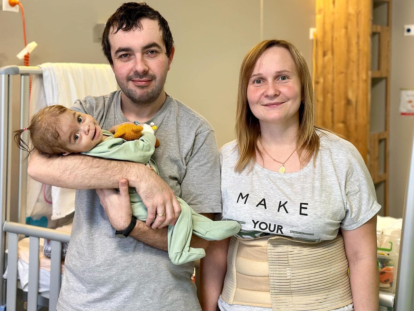 Дівчинка народилася в Тернополі у лютому 2023-го з вродженою вадою серця, яку діагностували ще до її народження. А після — у неї виявили ще й біліарну атрезію з формуванням печінкової недостатності. Батьки Тетянки зверталися до багатьох лікарень, проте не скрізь їм могли допомогти. Коли дівчинці було три місяці, вона потрапила до київського «Охматдиту».