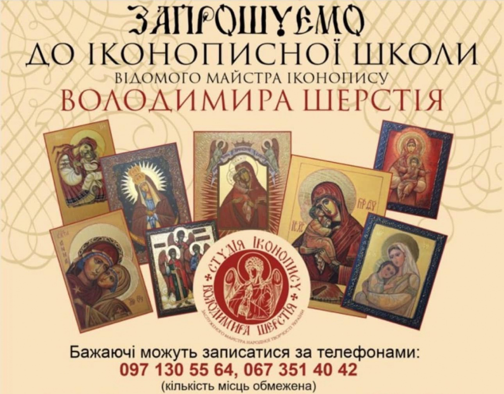 Іконописна школа заслуженого майстра народної творчості України Володимира Шерстія відбудеться упродовж тижня у Тернопільській міській бібліотеці для дорослих Nº4. Школа триватиме із 17 по 23 березня.
