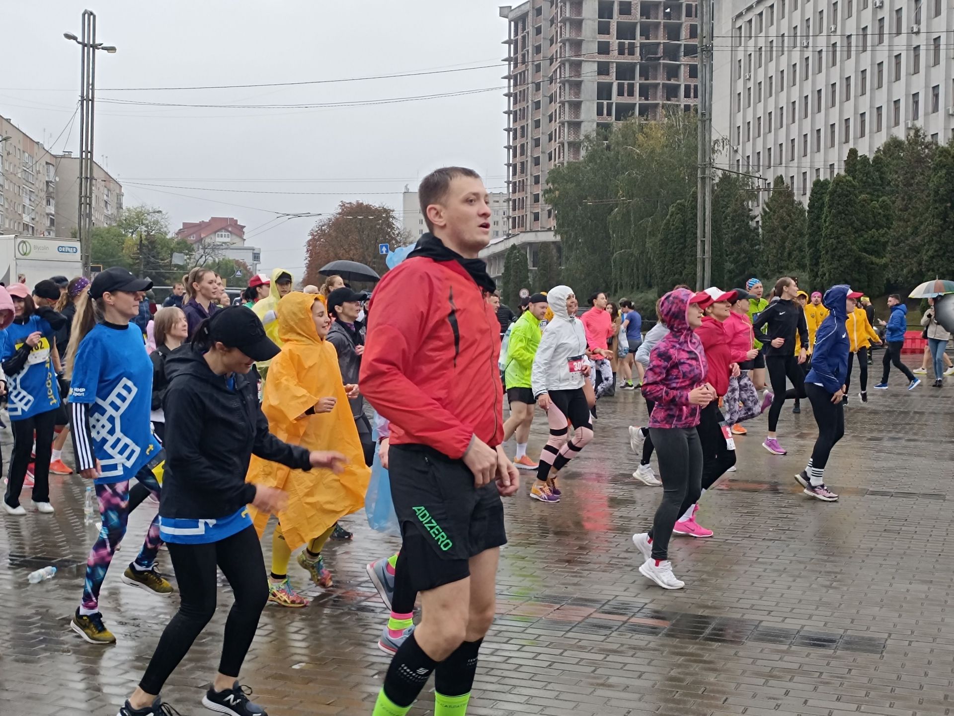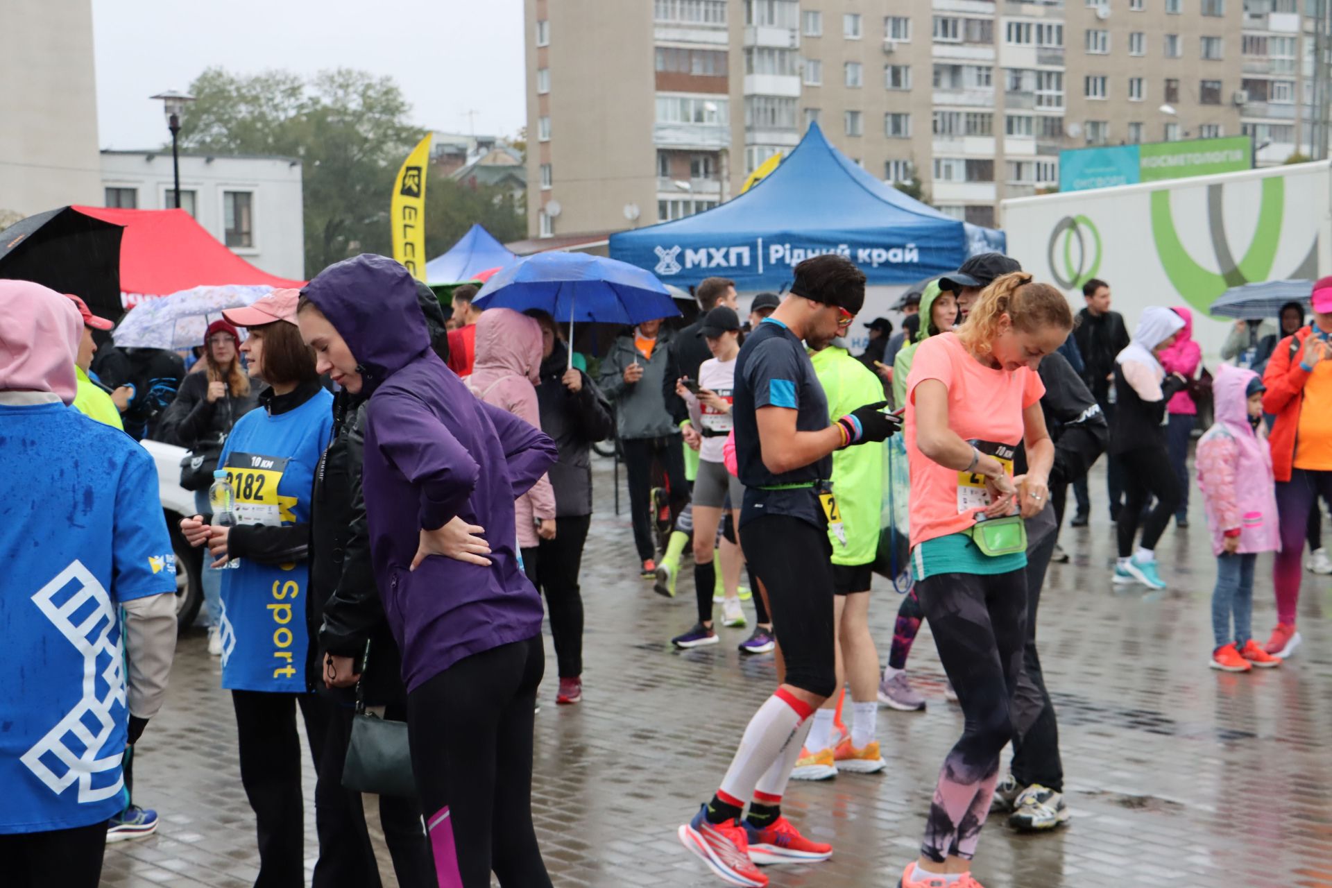 Незважаючи на дощ, спортивне містечко у парку ім. Тараса Шевченка розпочало роботу о 8:00. Учасники обрали для себе різні дистанції: