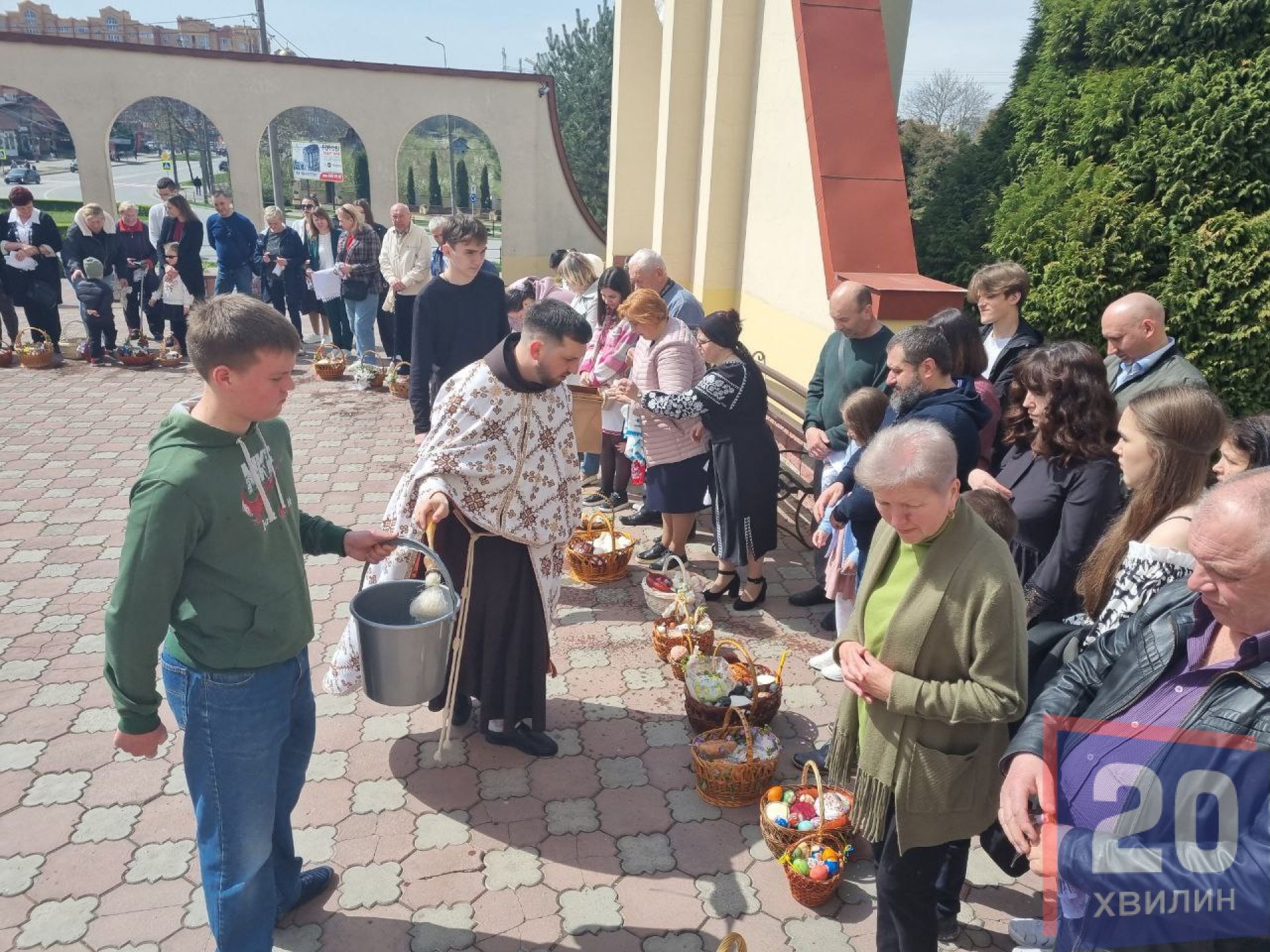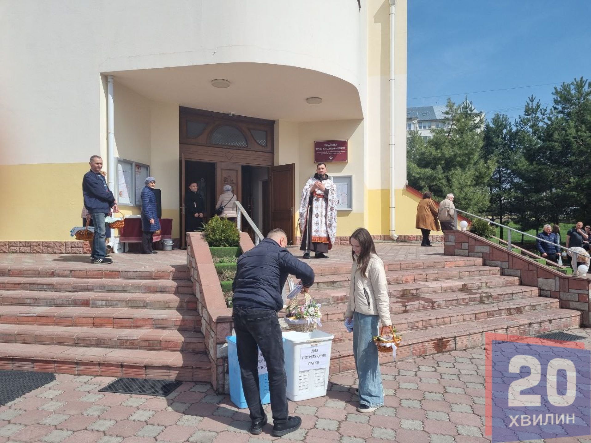 Традиційно перед церквами ставлять кошики для потребуючих, куди парафіяни кладуть вже освячені паски, яйця, ковбаски.