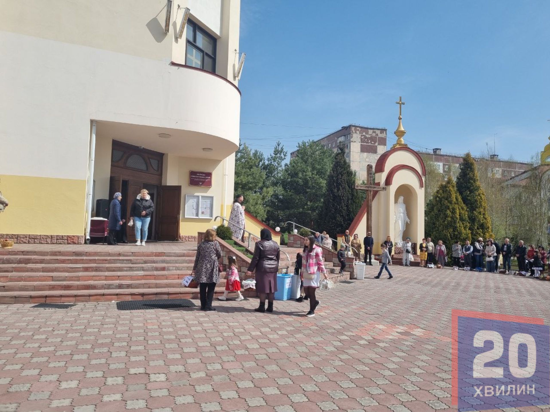 Освячення великодніх кошиків у храмах Тернополя традиційно розпочинається з молитви. Проте, як звернули увагу наші журналісти, цьогоріч суттєво поменшало чоловіків. Здебільшого — жінки різних поколінь із дітьми. Дехто прийшов до церкви родиною. Перед освяченням кошиків люди йшли до Плащаниці.