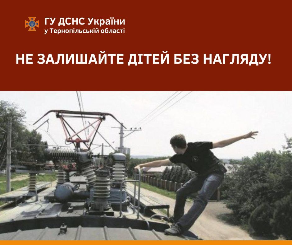 30 травня у м. Тернопіль на вул. Новий Світ неповнолітній хлопець, перебуваючи на даху вагону електропотягу, котрий знаходився на колії вагонного депо, отримав ураження електричним струмом та впав.