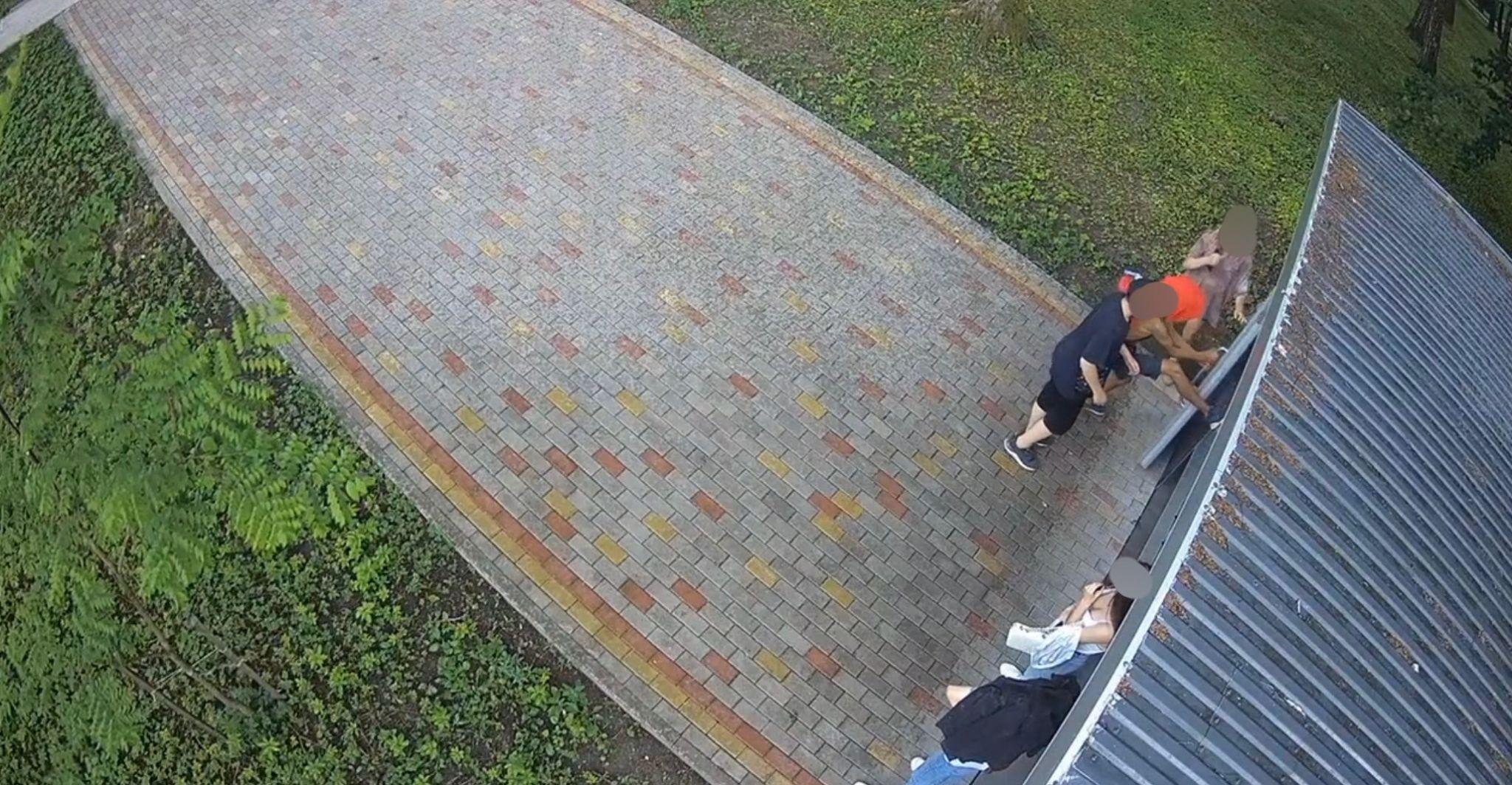 - У парку «Здоров'я» камера відеоспостереження зафіксувала, як підлітки намагаються зламати двері та потрапити до вбиральні.