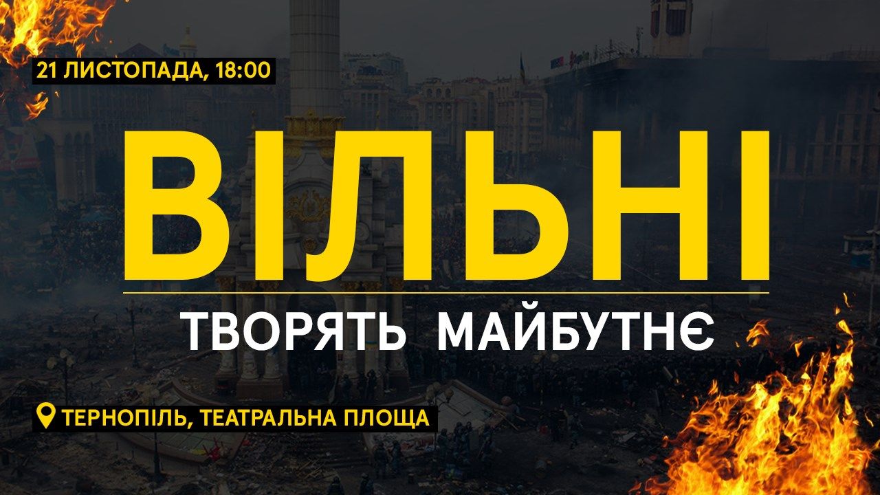 21 листопада на Театральному майдані Тернополя відбудеться Всеукраїнська акція "Вільні творять майбутнє". Учасники акції разом зі студентами з інших міст одночасно заспівають гімн України як символ єдності молоді з різних куточків країни.