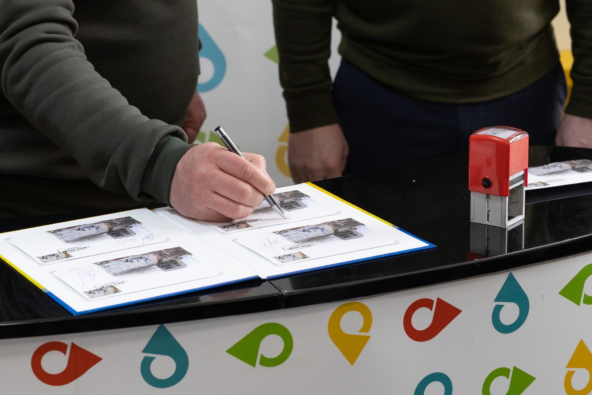 У Тернополі погасили нову марку до річниці війни, на якій вказали агресору потрібний напрямок