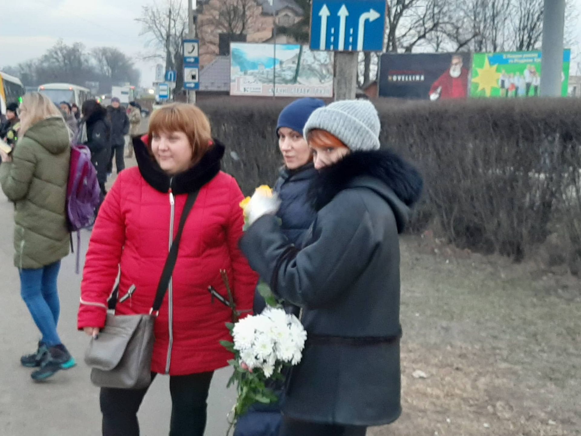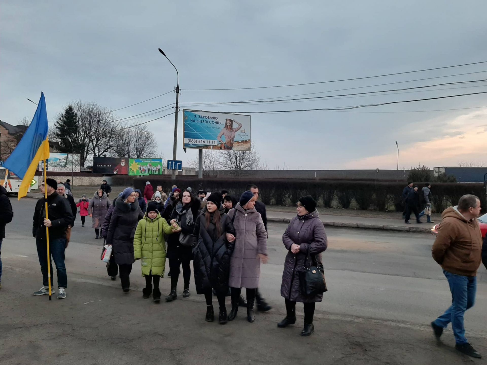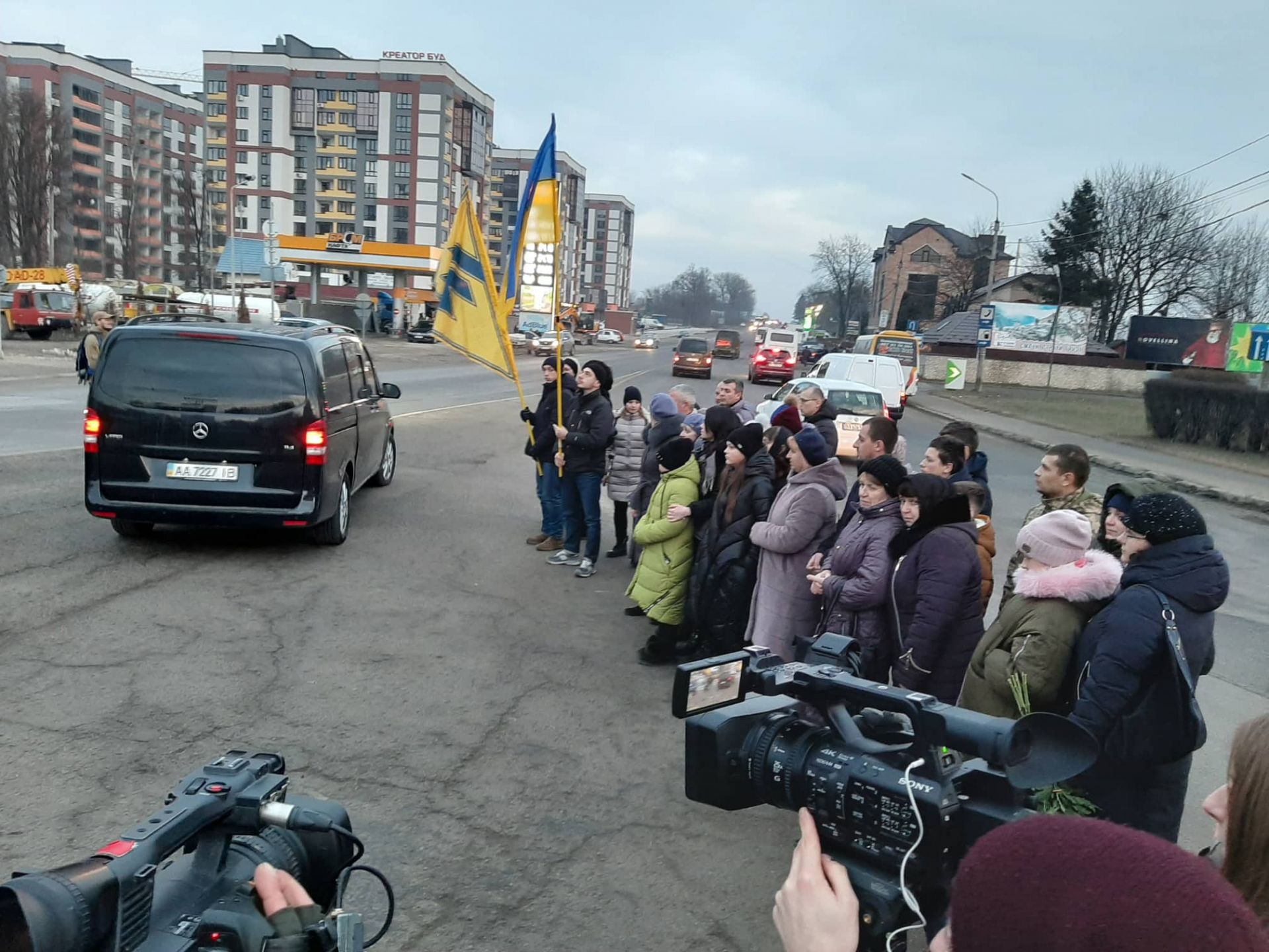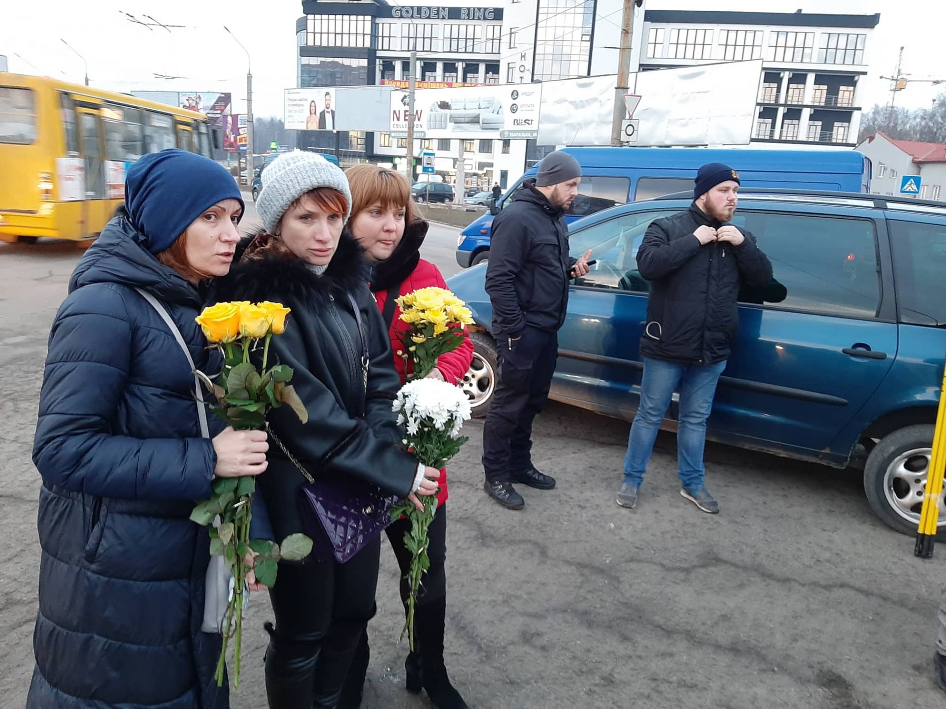 На Збаразькому кільці десятки тернополян з квітами і лампадками, побратими - з прапорами.