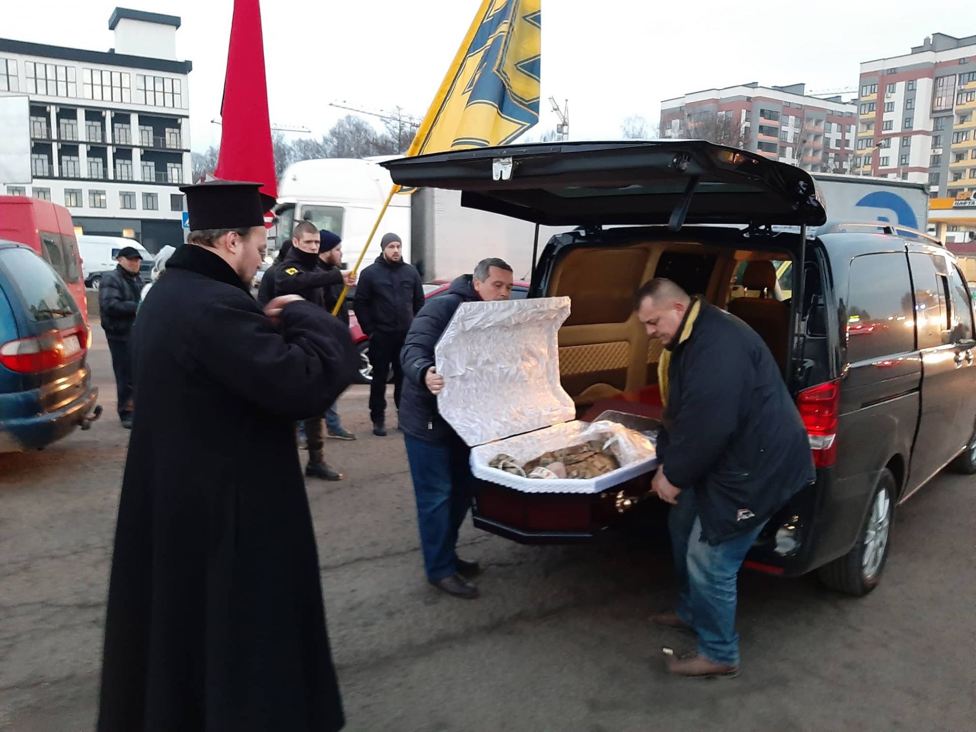 Біля Збаразького кільця відправили панахиду за померлим Олегом Литвинцем. Далі авто вирушило у Підволочиськ, де земляки попрощаються з добровольцем біля стели Ангелові, а далі - у його рідне село Скорики, що у Підволочиському районі, де і поховають бійця 29 січня.
