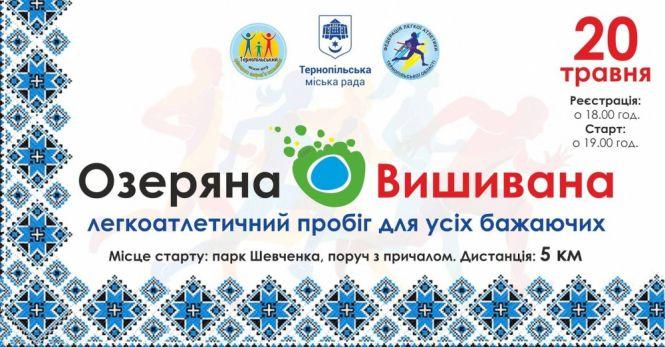 20 травня з нагоди Всесвітнього дня Вишиванки усі охочі жителі Тернопільської громади запрошуються на легкоатлетичний пробіг «Озеряна Вишивана», повідомляє пресслужба міської ради.