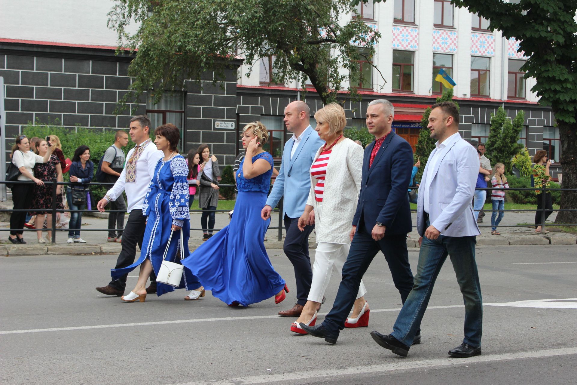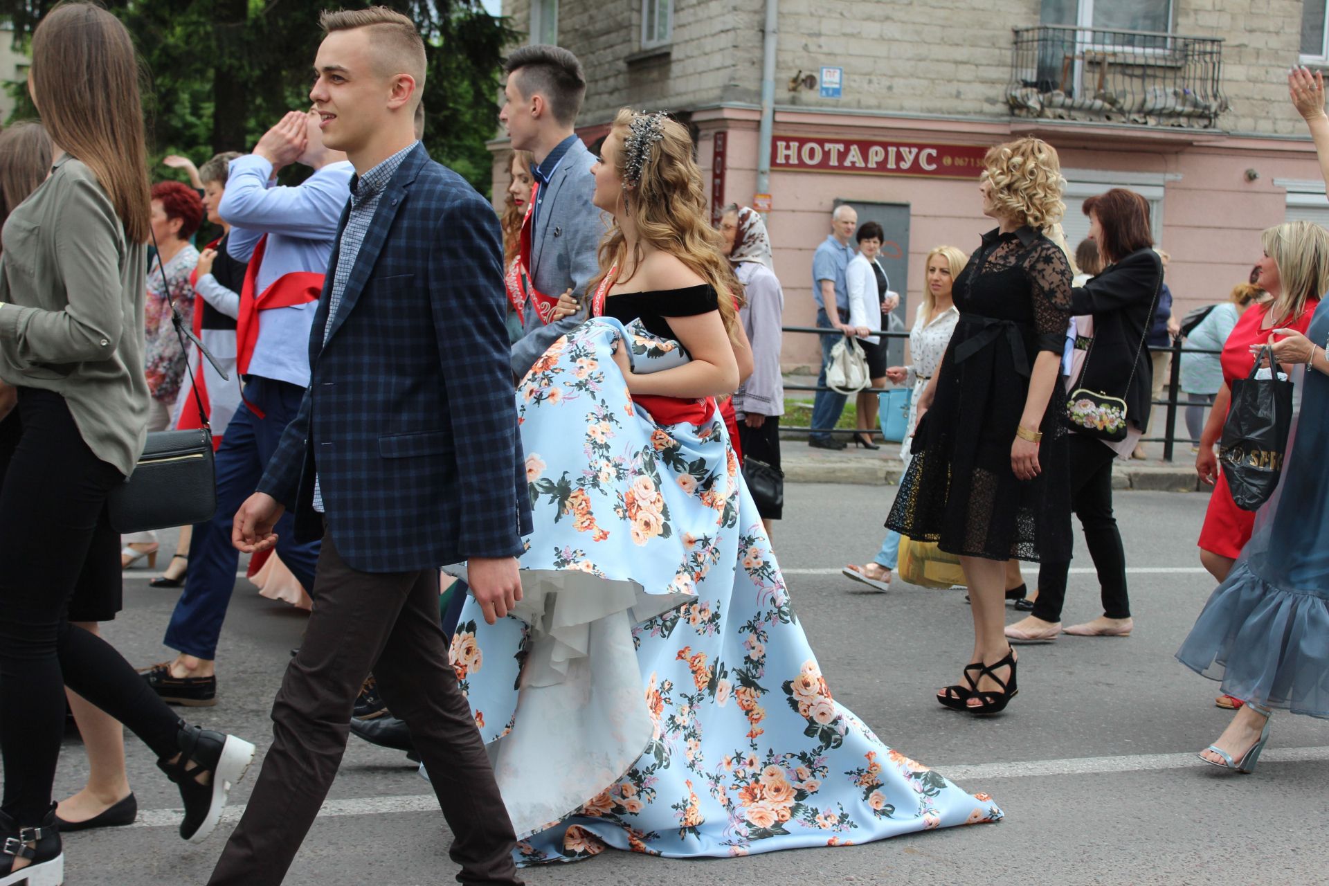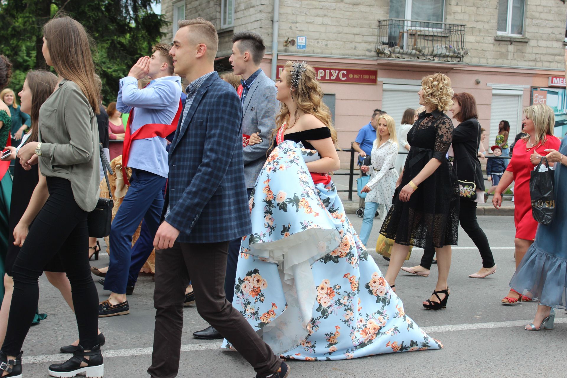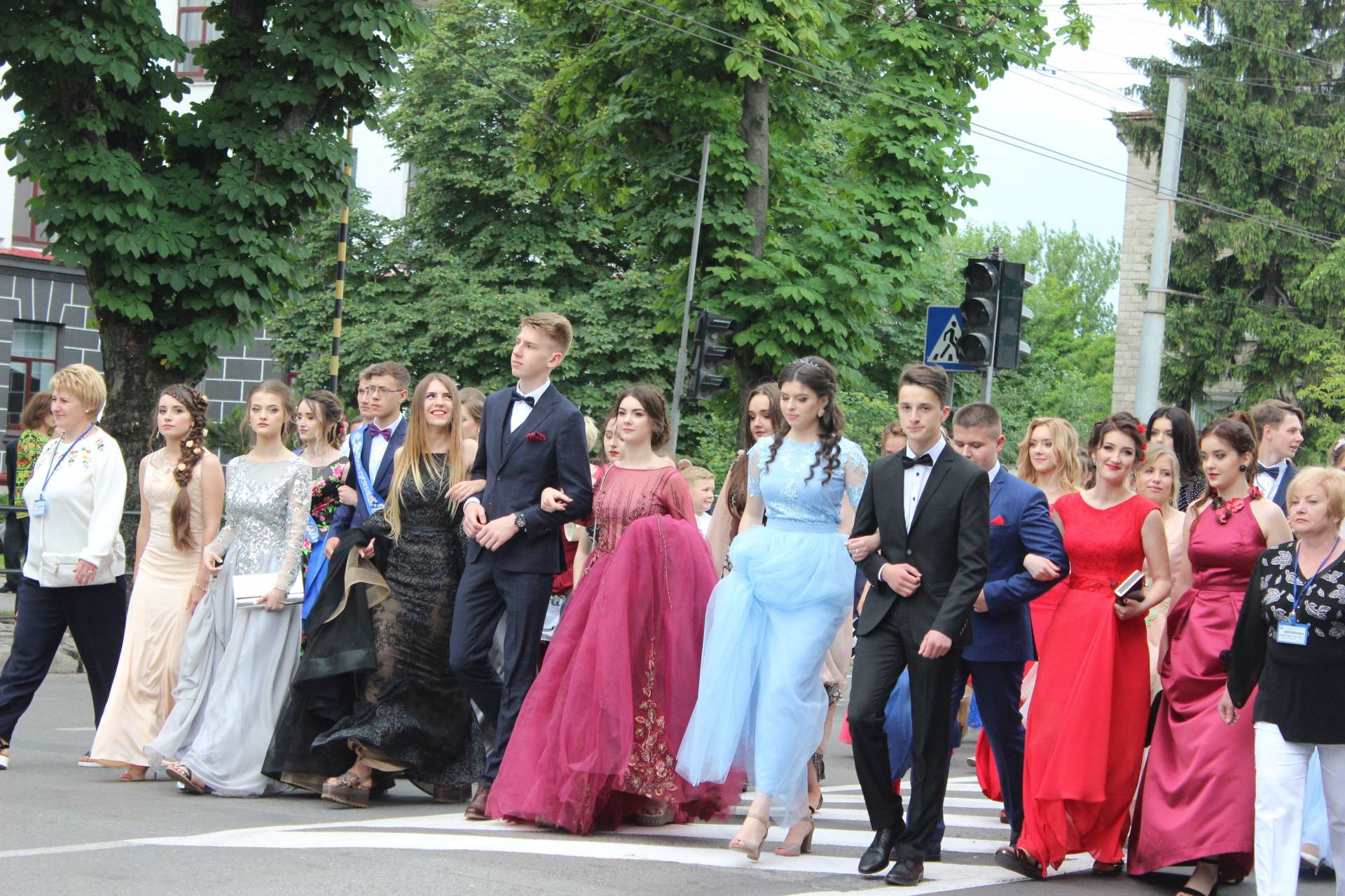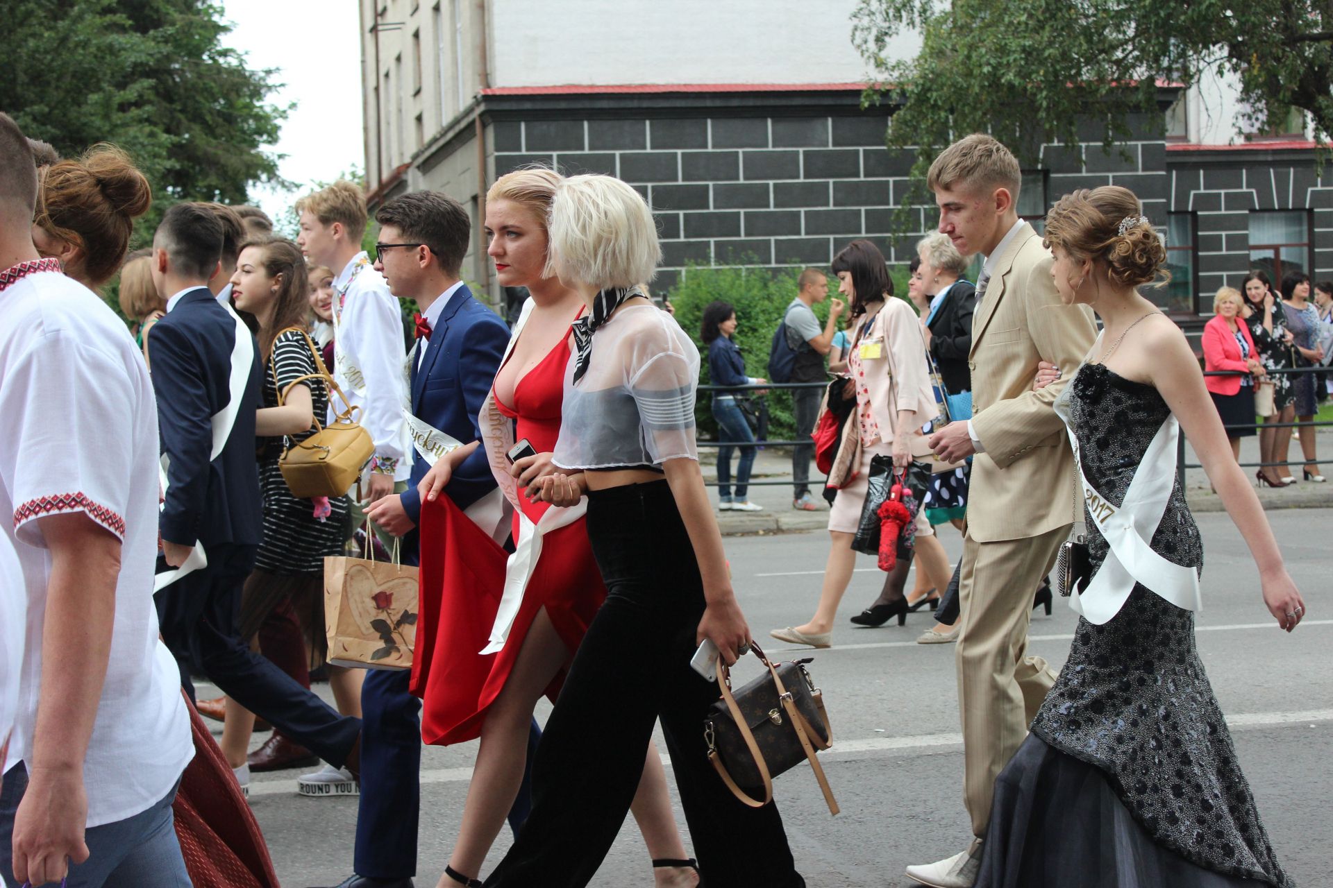 Випускники вигукували назви своїх шкіл, фотографувались, співали. А деякі класи супроводжували музиканти.