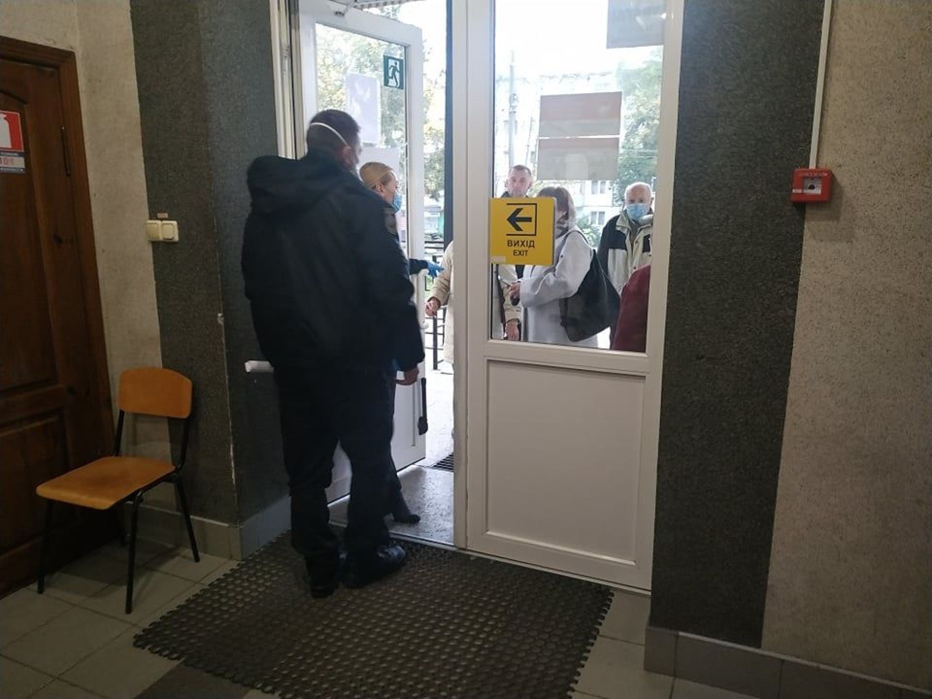 У приміщення, де розміщені урни пускають по троє людей. Окрему кабінку облаштували для людей, які мають підвищену температуру.