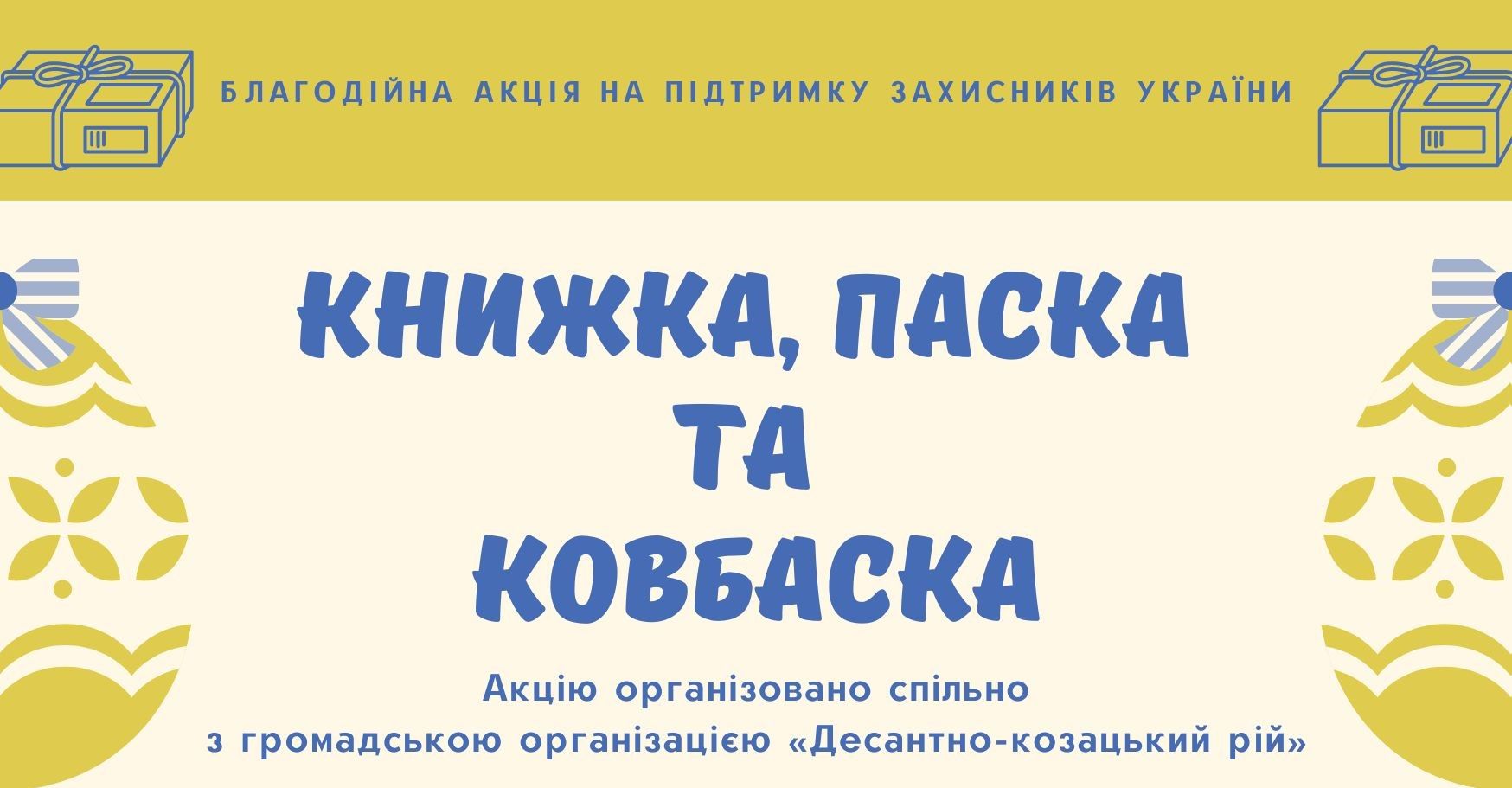 Бібліотекарі приймають книжки, а волонтери ГО «Десантно-козацький рій» — паски та ковбаски. Об’єднавшися спільно — зібраний провіант з книгами, напередодні Світлого Великодня, волонтери доставлять нашим захисникам на бахмутському напрямку.