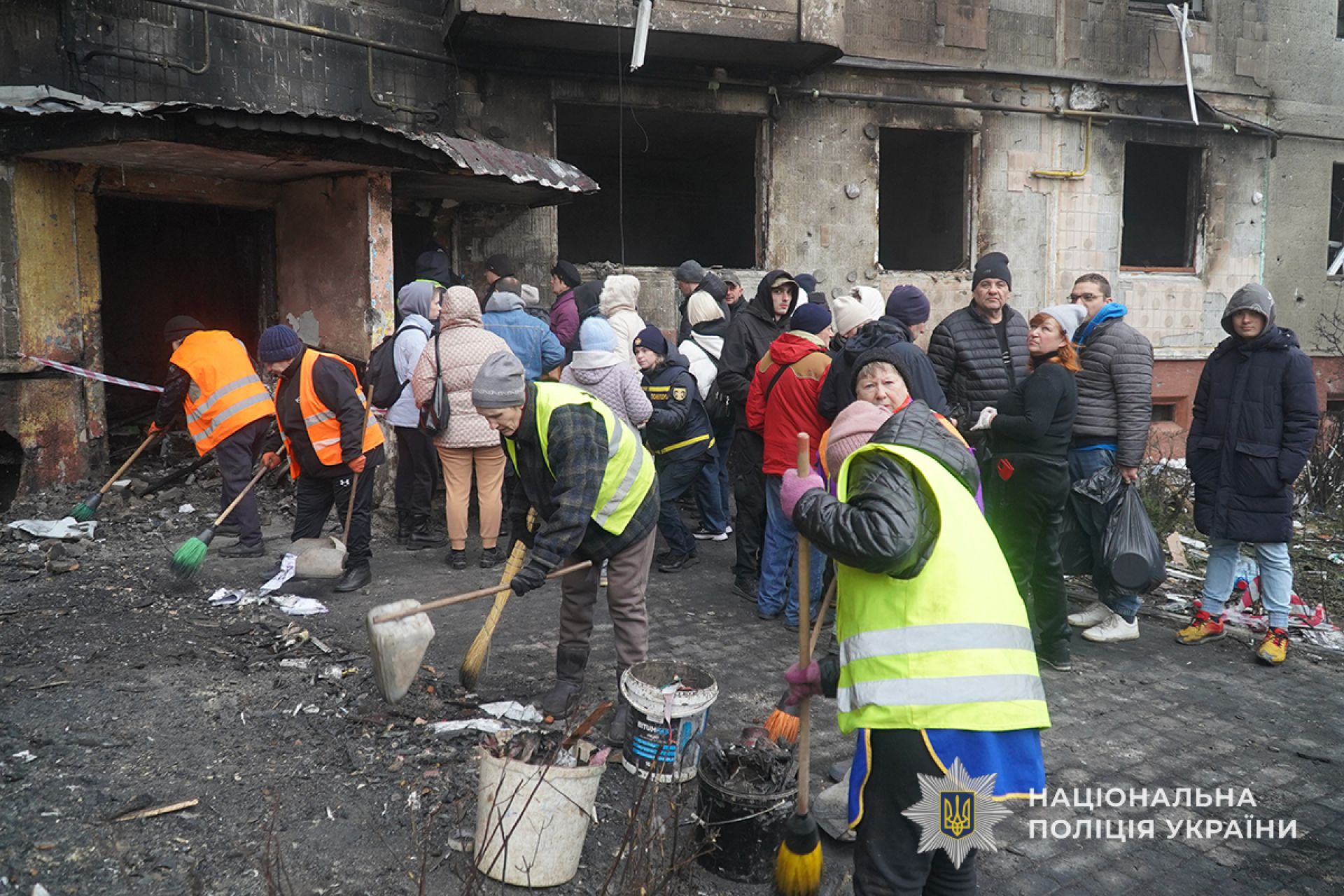 Цілодобово на місці трагедії працюють працівники поліції. У перші хвилини після вибухів вони допомагали людям вибиратися з під’їздів і проводили евакуацію, а зараз продовжують роботу: відбирають зразки ДНК, розшукують зниклих безвісти, допомагають з ідентифікацією поранених та загиблих.