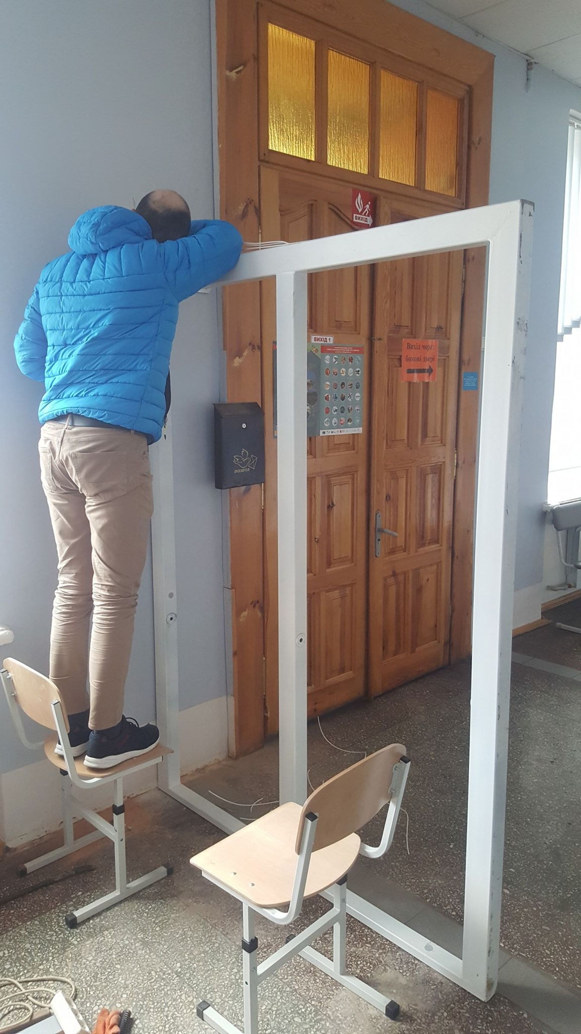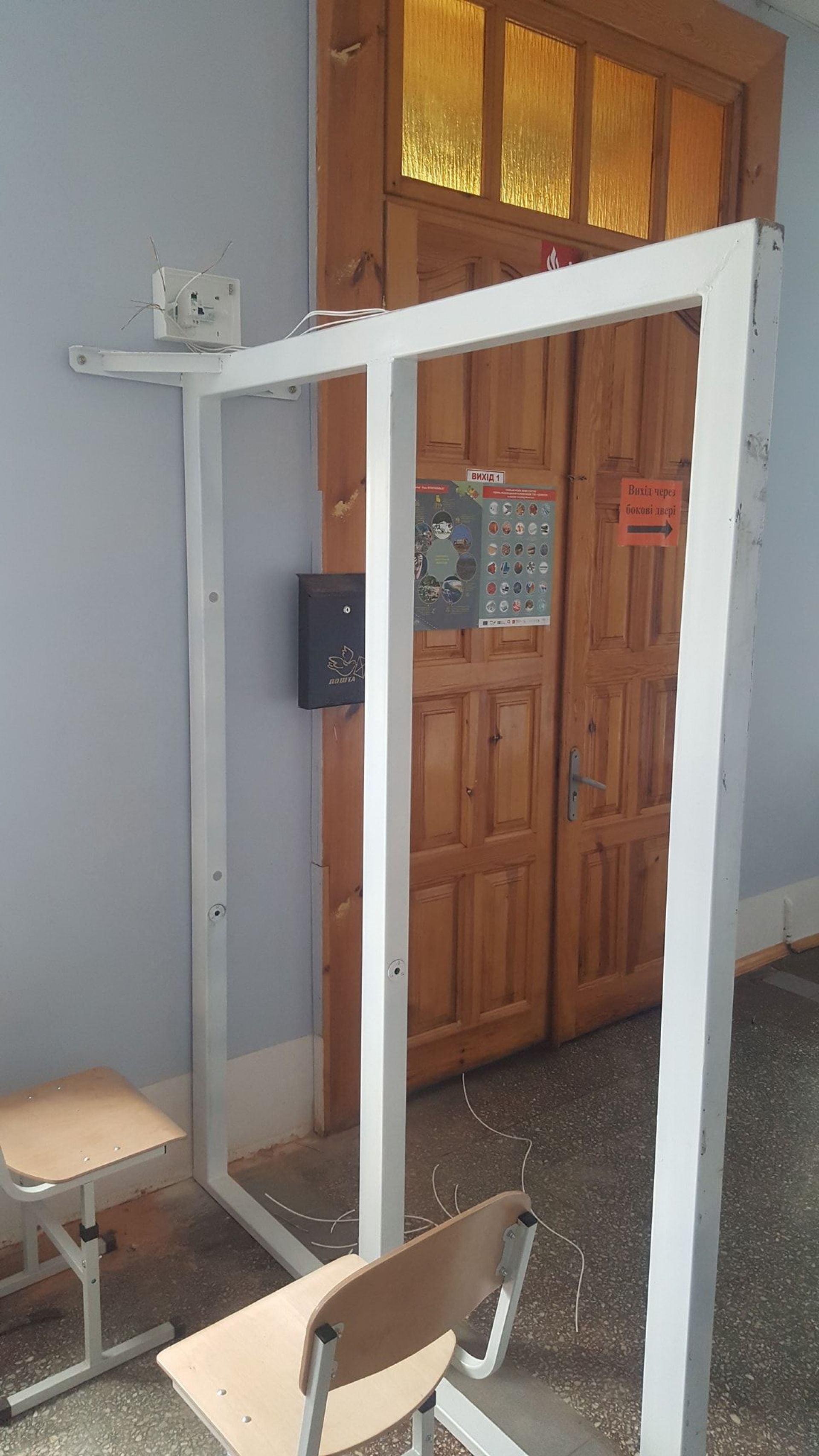 — Два роки тому освітній експерт Віктор Громовий розповів про цікавий пристій для визначення настрою мешканців школи, — написав директор. — Його суть полягає у тому, щоб учень з гарним настроєм в школу чи зі школи проходив через одну рамку(зелену), а якщо настрій не дуже, то через іншу (червону).