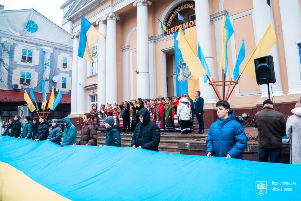 Акція «Єднання» стала частиною низки заходів, які проходять у Тернополі до Дня Соборності України. Це день, що нагадує про історичну подію 1919 року — об’єднання УНР і ЗУНР в одну державу.