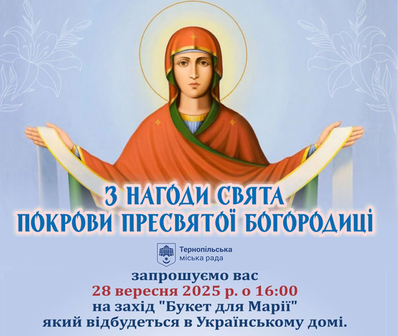 28 вересня в Українському домі відбудеться акція «Букет для Марії», приурочена до свята Покрови Пресвятої Богородиці. До участі запрошують родини полеглих захисників.