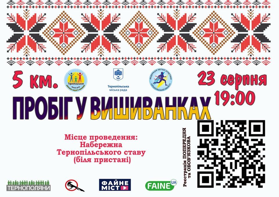 Символічний пробіг у вишиванках відбудеться 23 серпня з нагоди відзначення Дня Державного прапора України.